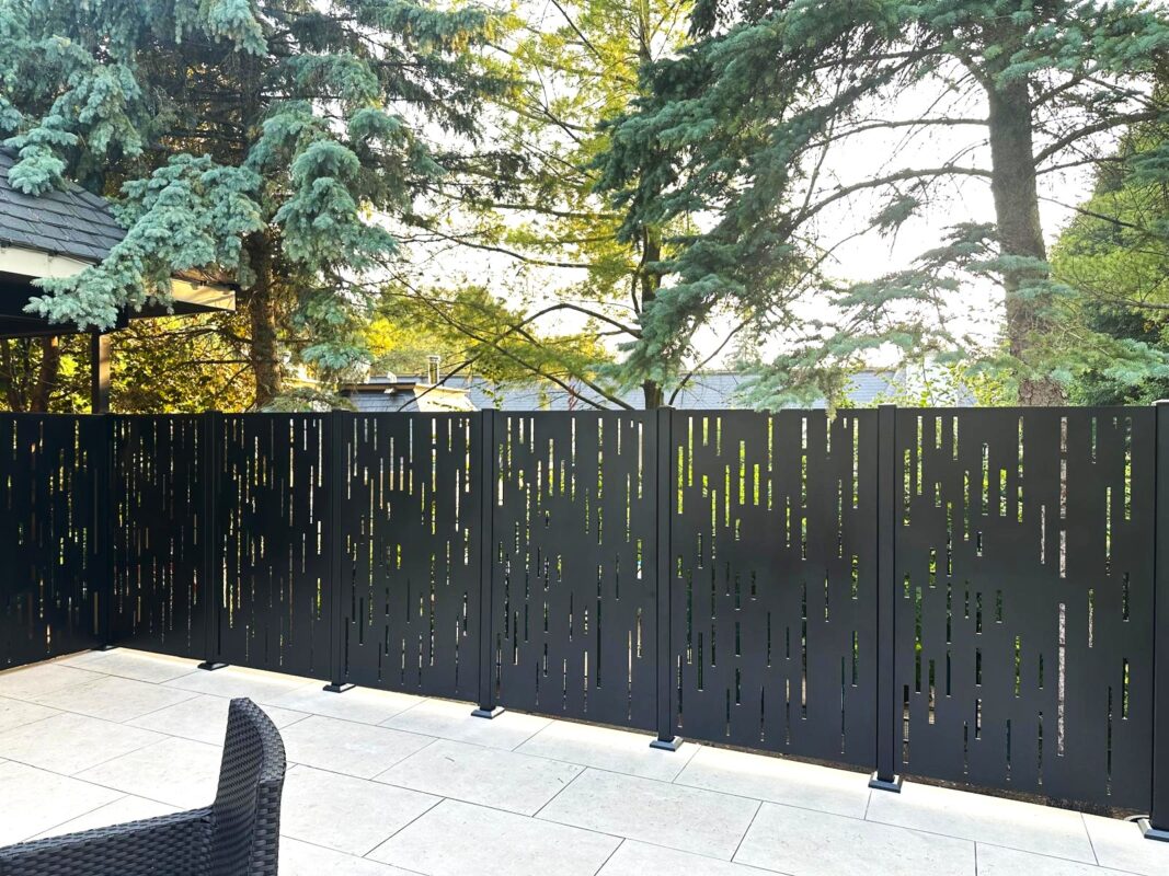 Each custom size privacy metal panel we create is different, and every piece is created to meet your specifications. From the type of material used, to the pattern allowing varying levels of light through, and all the way down to thickness, each piece is made to fit your space.