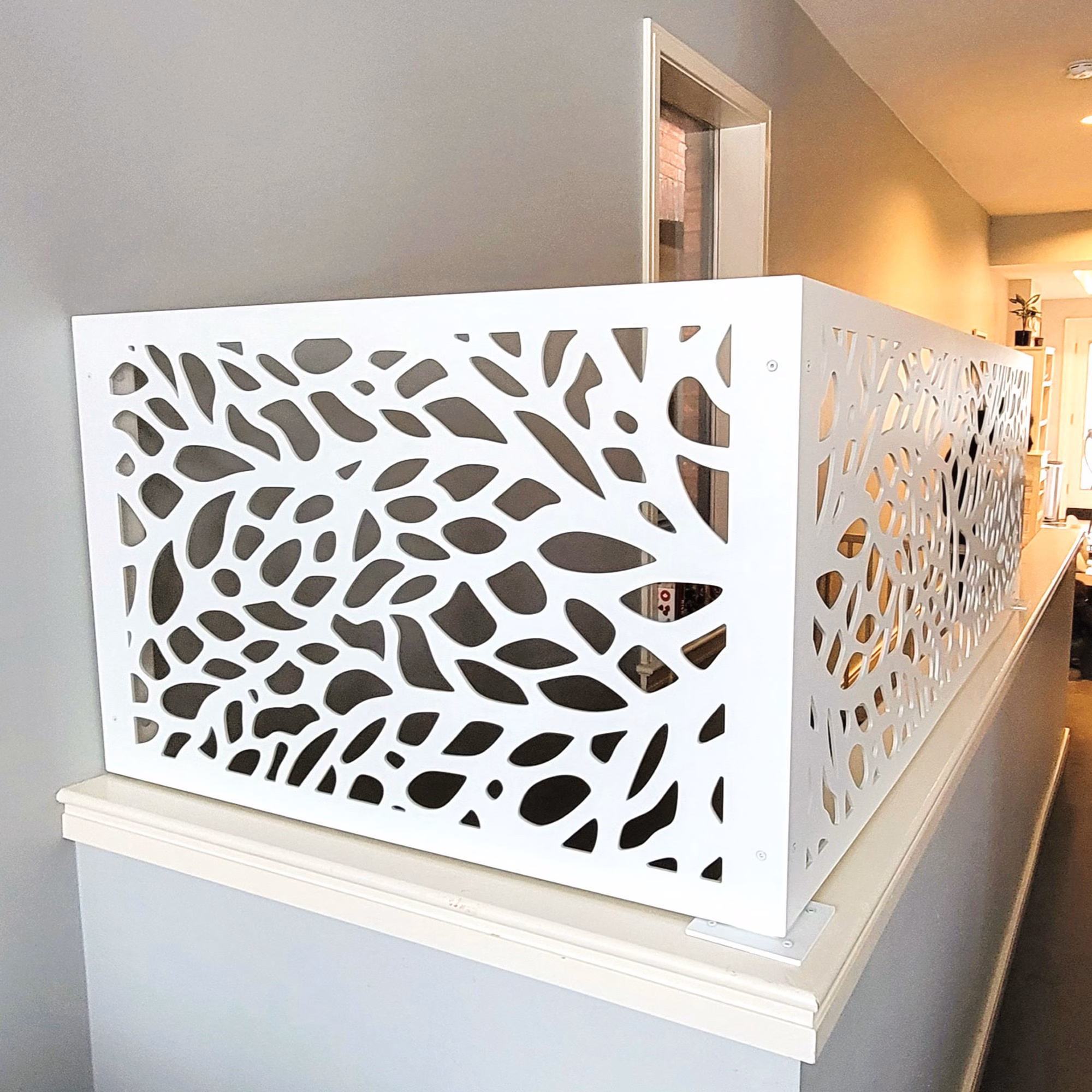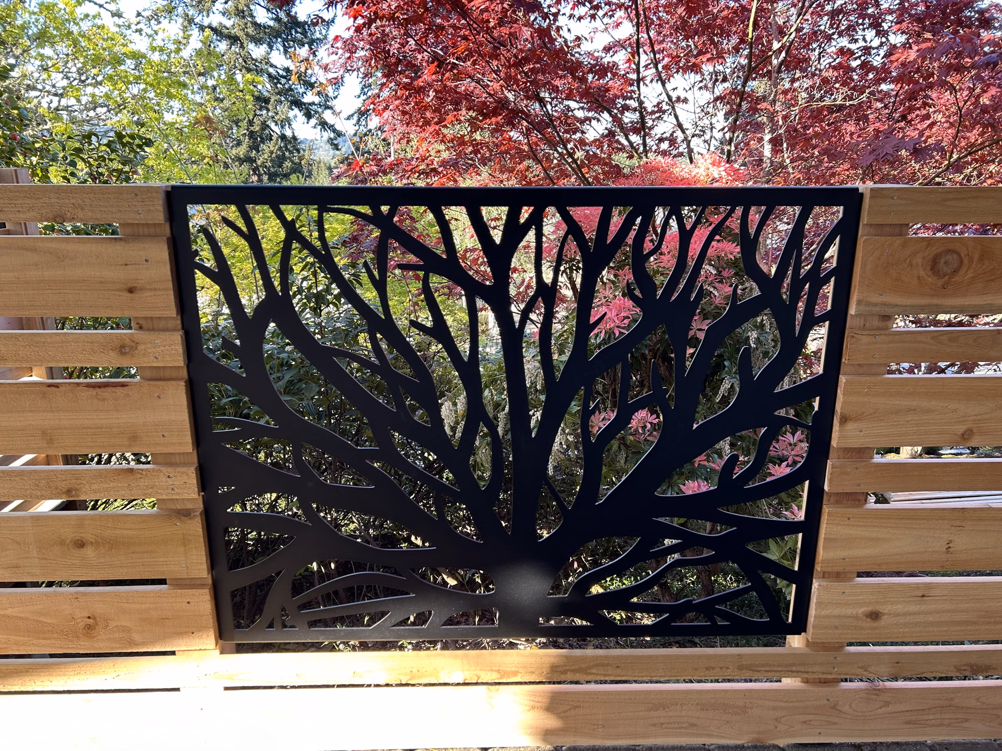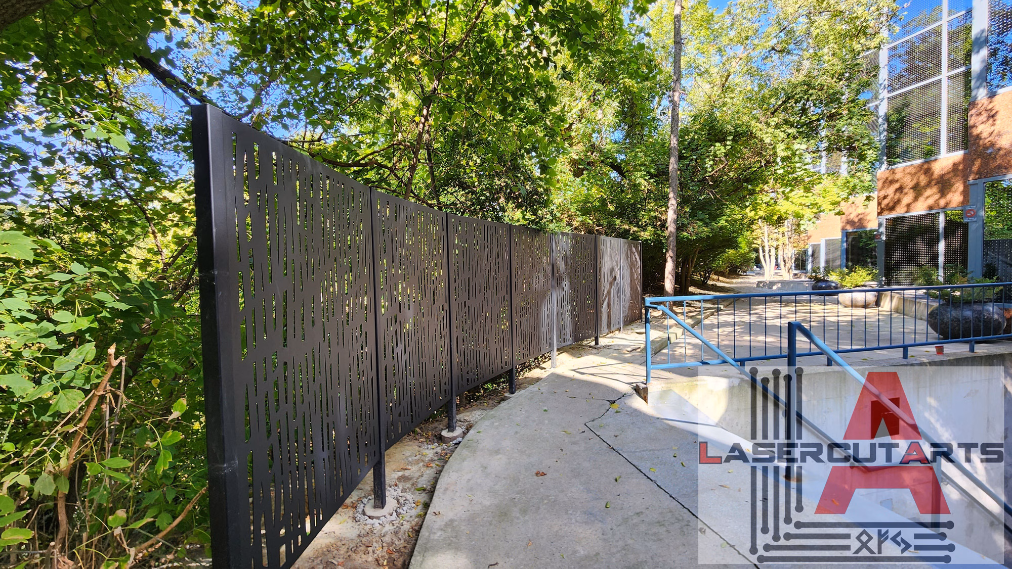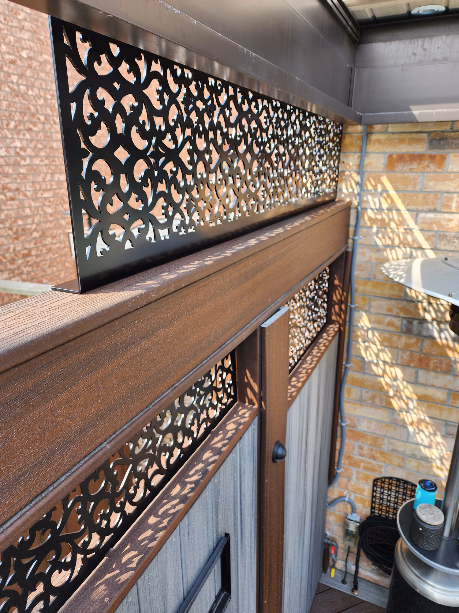 Option 4 is adding a 90-degree bent flange to one or more sides of the panel. The flange runs the entire length of the side, and is usually either 1.25” or 1.5” in length (though we have made longer and shorter ones when needed). A flange adds stability, rigidity, makes the panel sturdier overall, and is the best option for fences, screens, and more see-through pieces.