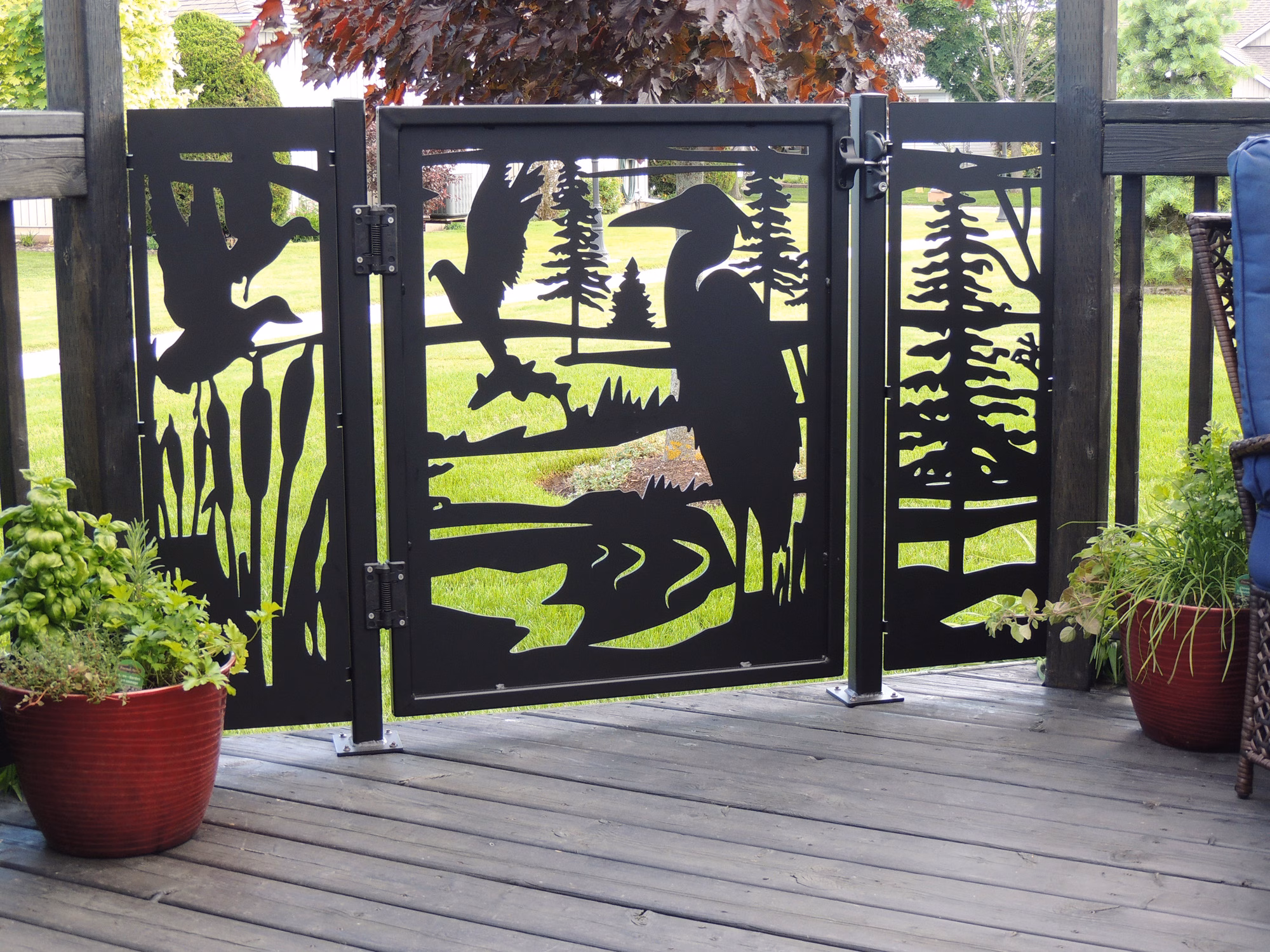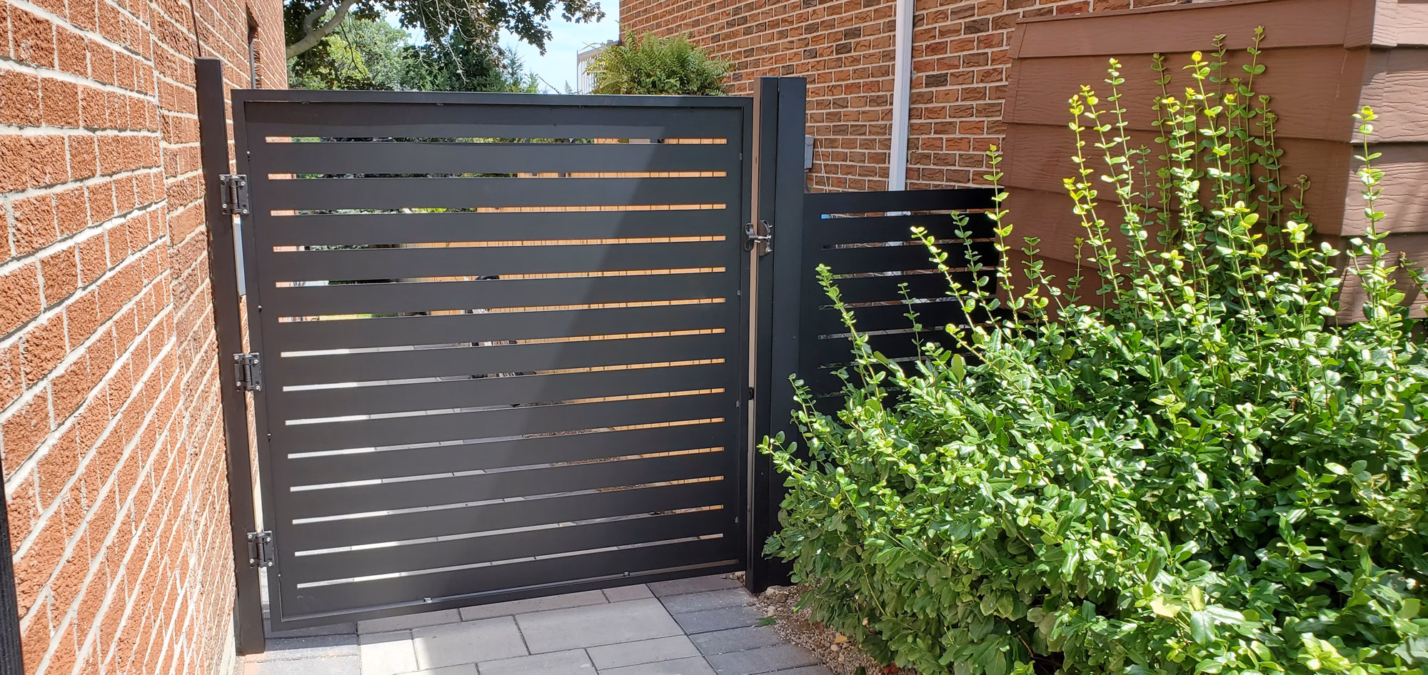 The panel is spot-welded to the gate and then powder coated, so the welding seams are covered, and there are no interruptions to the finish.