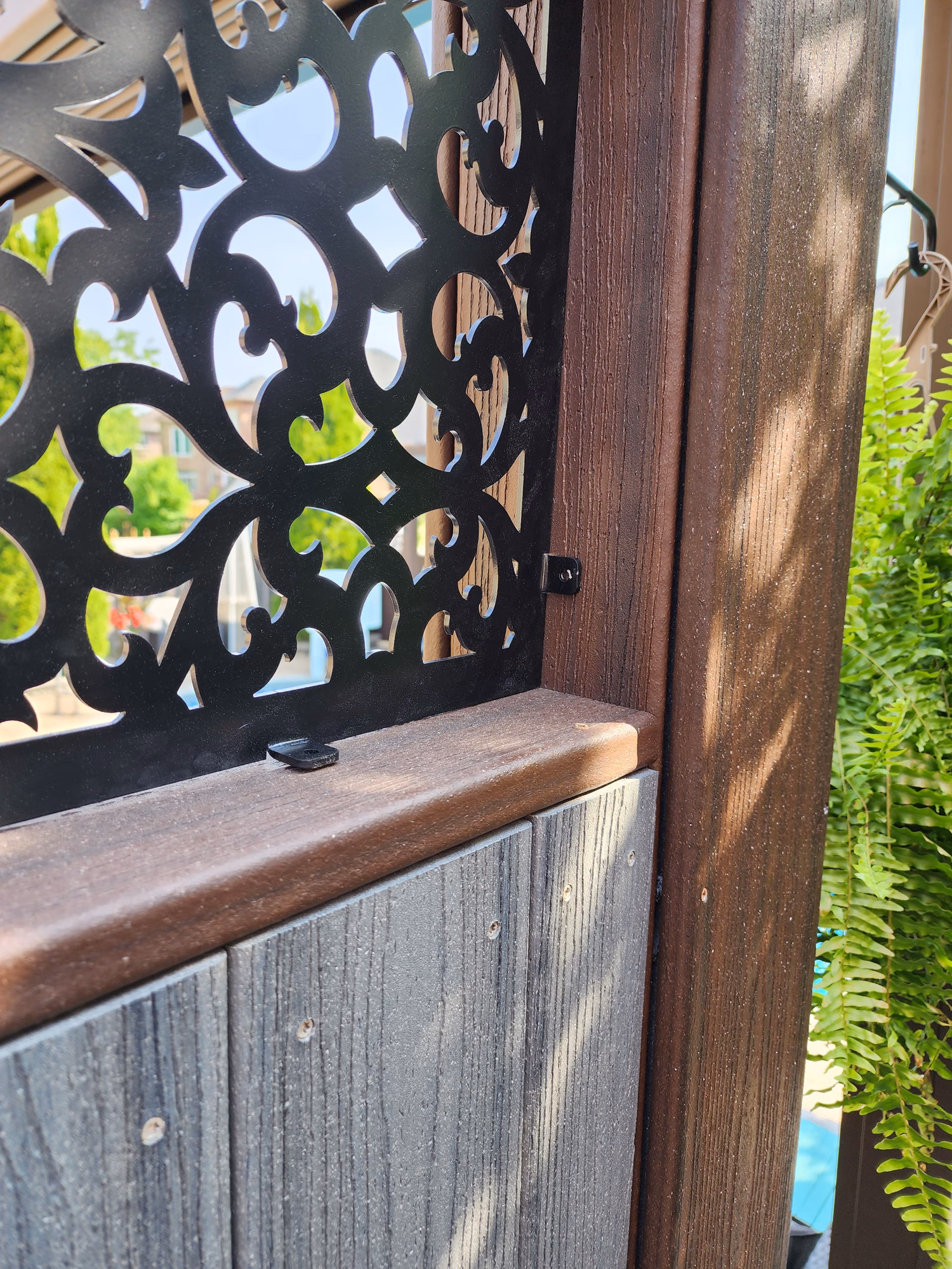These posts are also used as structural support and mounted horizontally with panels on top of them, or sideways, with gates attached to them. This way of installation is a popular choice for privacy panels used in outdoor spaces like grill areas and pergolas.