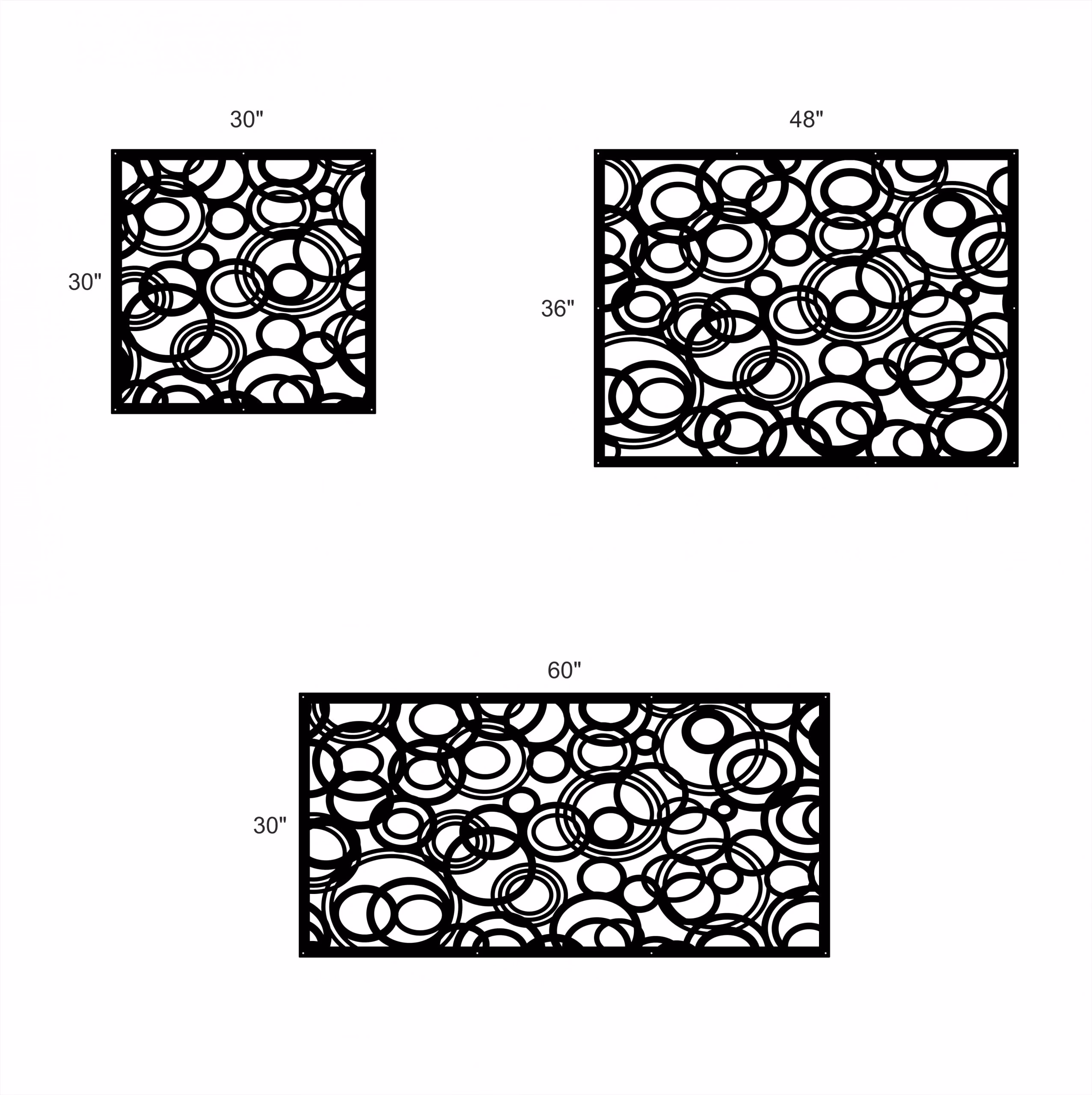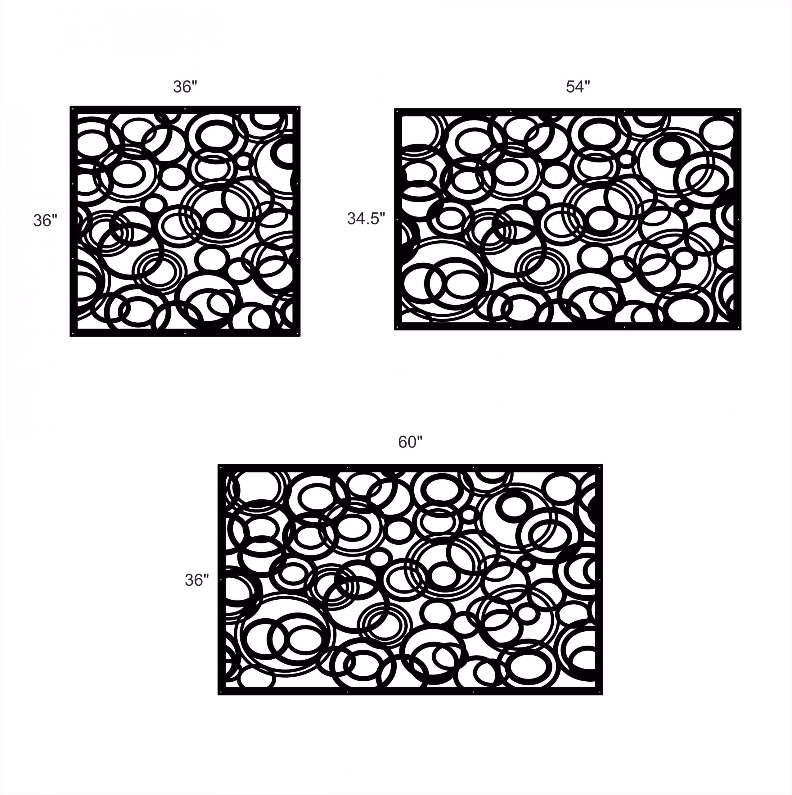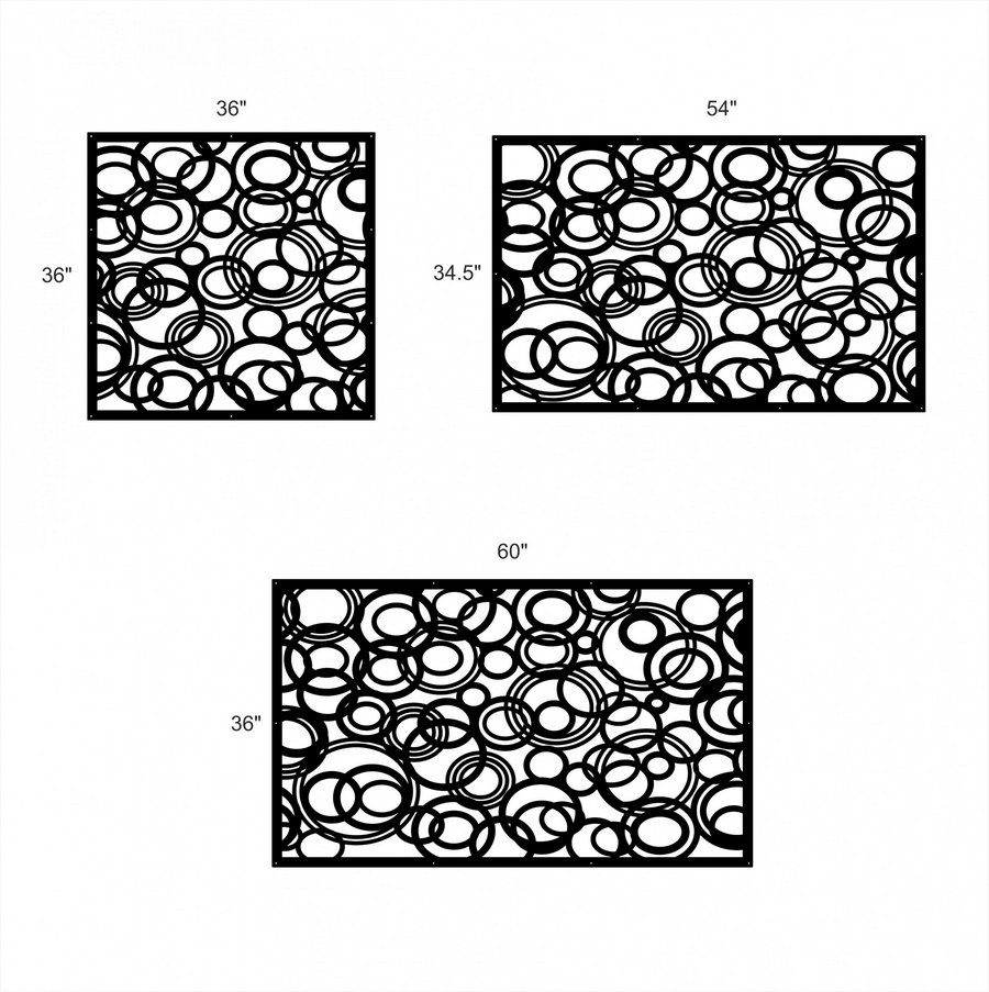 3D Circles Privacy Panels could be used as privacy panels, gate inserts, wall inserts, decor inserts, fence inserts, wall art, etc. Panels are made from ⅛” (~3.2mm, ~0.125″) thick aluminum to last long (no rusting/ rust bleeding). In addition, the aluminum panel is powder coated for extra protection. We offer a variety of colours to choose from.