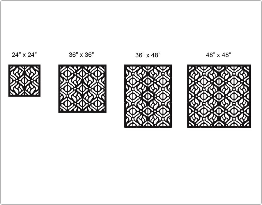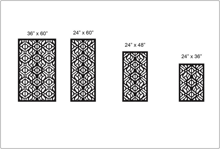 Antique Pattern Privacy Panels could be used as privacy panels, gate inserts, wall inserts, decor inserts, fence inserts, wall art, etc. Panels are made from ⅛” (~3.2mm, ~0.125″) thick aluminum to last long (no rusting/ rust bleeding). In addition, the aluminum panel is powder coated for extra protection. We offer a variety of colours to choose from.