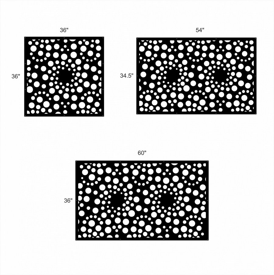 Atom Privacy Panels could be used as privacy panels, gate inserts, wall inserts, decor inserts, fence inserts, wall art, etc. Panels are made from ⅛” (~3.2mm, ~0.125″) thick aluminum to last long (no rusting/ rust bleeding). In addition, the aluminum panel is powder coated for extra protection. We offer a variety of colours to choose from.