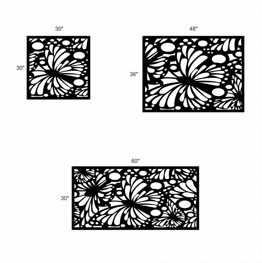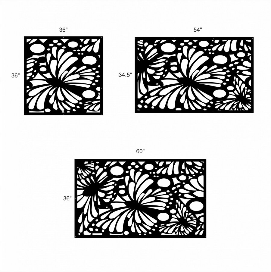 Big Butterfly Privacy Panels could be used as privacy panels, gate inserts, wall inserts, decor inserts, fence inserts, wall art, etc. Panels are made from ⅛” (~3.2mm, ~0.125″) thick aluminum to last long (no rusting/ rust bleeding). In addition, the aluminum panel is powder coated for extra protection. We offer a variety of colours to choose from.