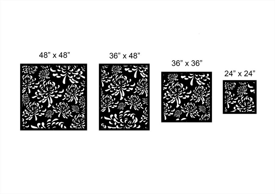 Dahlias Privacy Panels could be used as privacy panels, gate inserts, wall inserts, decor inserts, fence inserts, wall art, etc. Panels are made from ⅛” (~3.2mm, ~0.125″) thick aluminum to last long (no rusting/ rust bleeding). In addition, the aluminum panel is powder coated for extra protection. We offer a variety of colours to choose from.