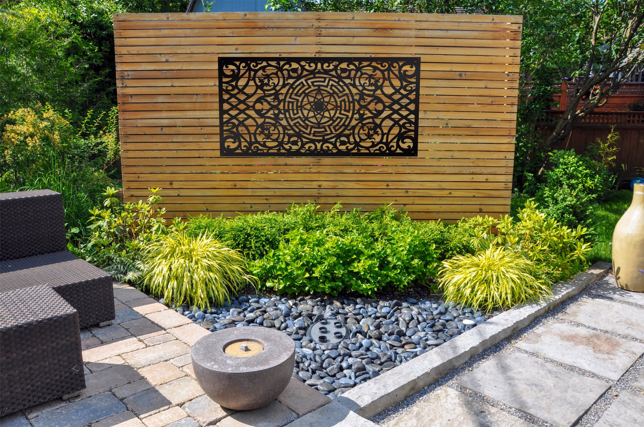 Fairtale Privacy Panels could be used as privacy panels, gate inserts, wall inserts, decor inserts, fence inserts, wall art, etc. Panels are made from ⅛” (~3.2mm, ~0.125″) thick aluminum to last long (no rusting/ rust bleeding). In addition, the aluminum panel is powder coated for extra protection. We offer a variety of colours to choose from.