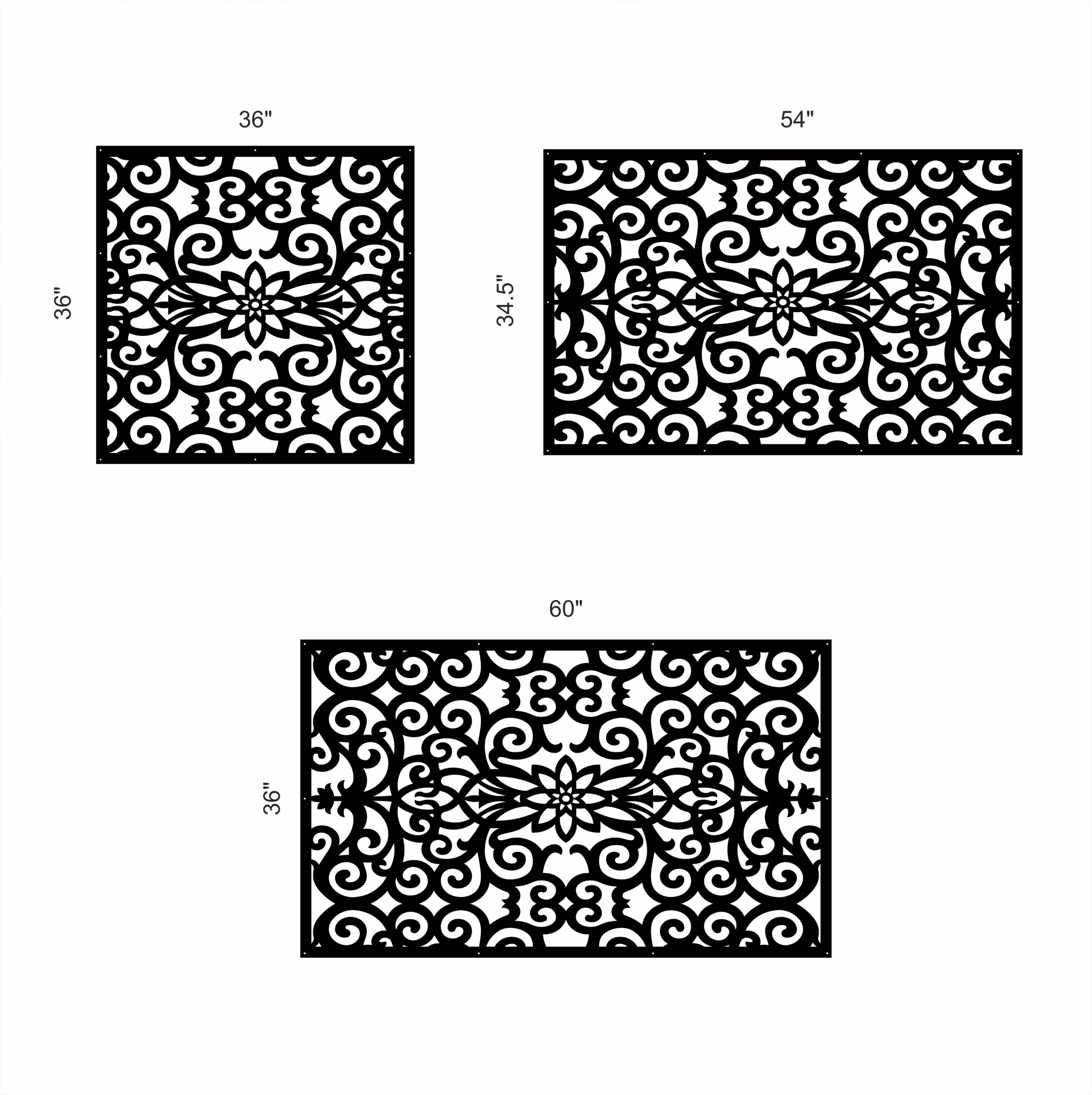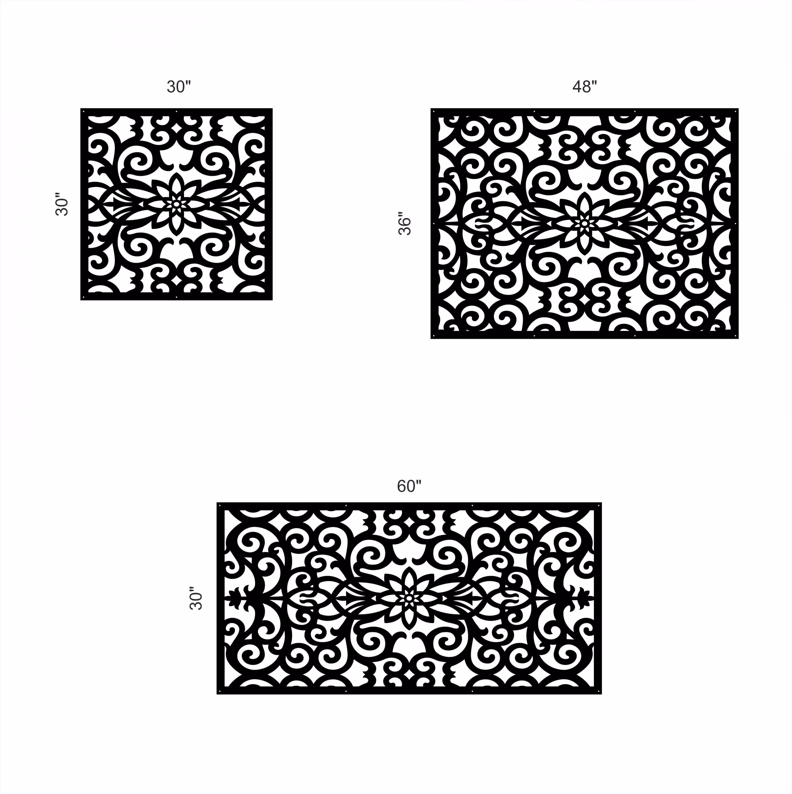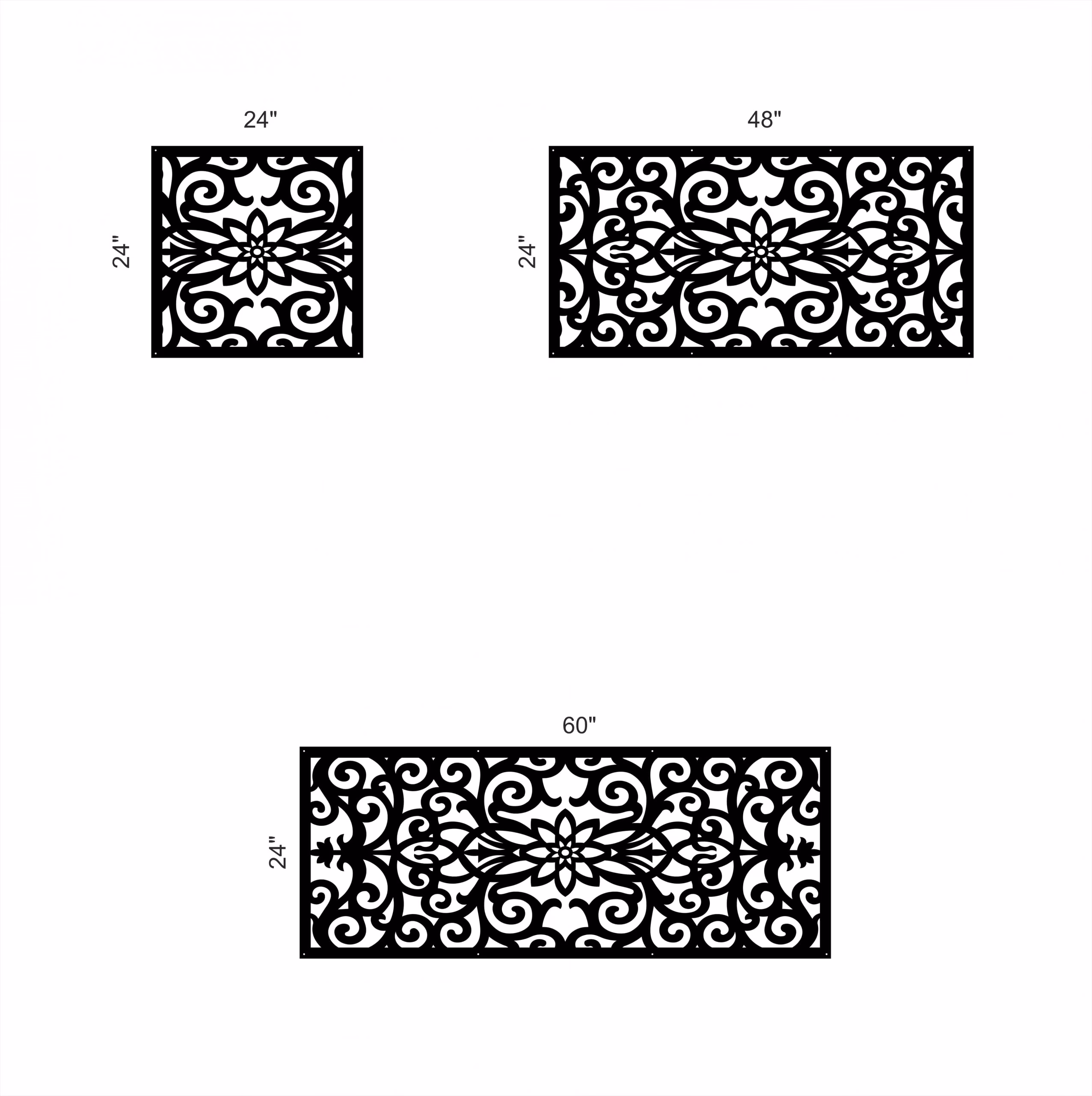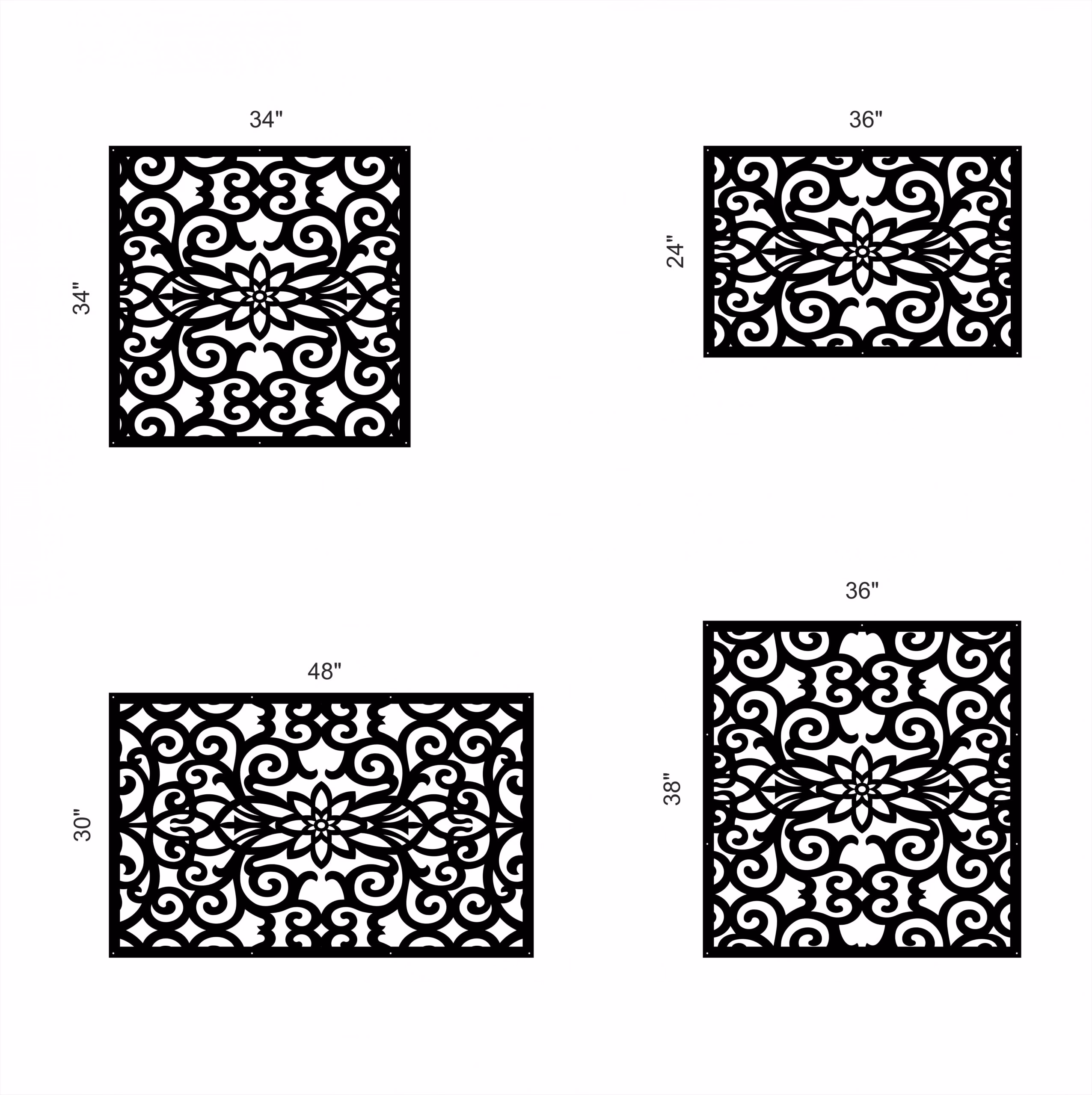 Felicia Privacy Panels could be used as privacy panels, gate inserts, wall inserts, decor inserts, fence inserts, wall art, etc. Panels are made from ⅛” (~3.2mm, ~0.125″) thick aluminum to last long (no rusting/ rust bleeding). In addition, the aluminum panel is powder coated for extra protection. We offer a variety of colours to choose from.