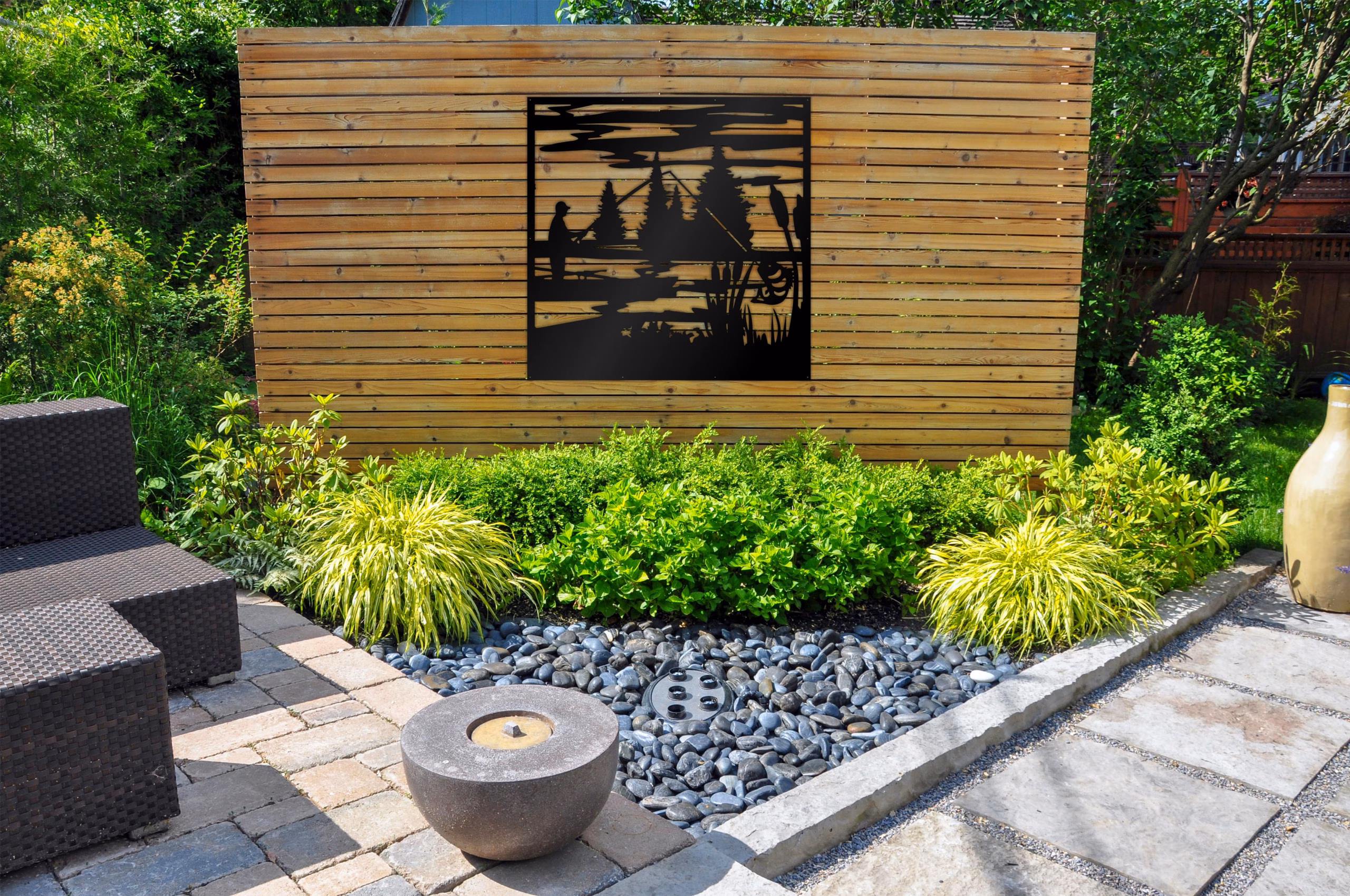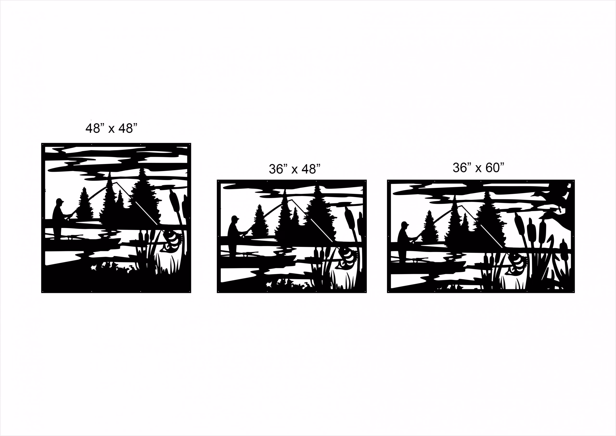 Fishing Privacy Panels could be used as privacy panels, gate inserts, wall inserts, decor inserts, fence inserts, wall art, etc. Panels are made from ⅛” (~3.2mm, ~0.125″) thick aluminum to last long (no rusting/ rust bleeding). In addition, the aluminum panel is powder coated for extra protection. We offer a variety of colours to choose from.