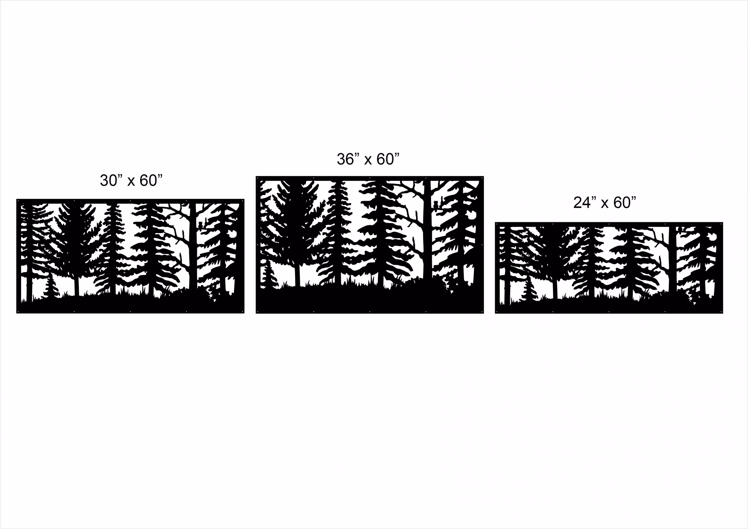 Forest Privacy Panels could be used as privacy panels, gate inserts, wall inserts, decor inserts, fence inserts, wall art, etc. Panels are made from ⅛” (~3.2mm, ~0.125″) thick aluminum to last long (no rusting/ rust bleeding). In addition, the aluminum panel is powder coated for extra protection. We offer a variety of colours to choose from.