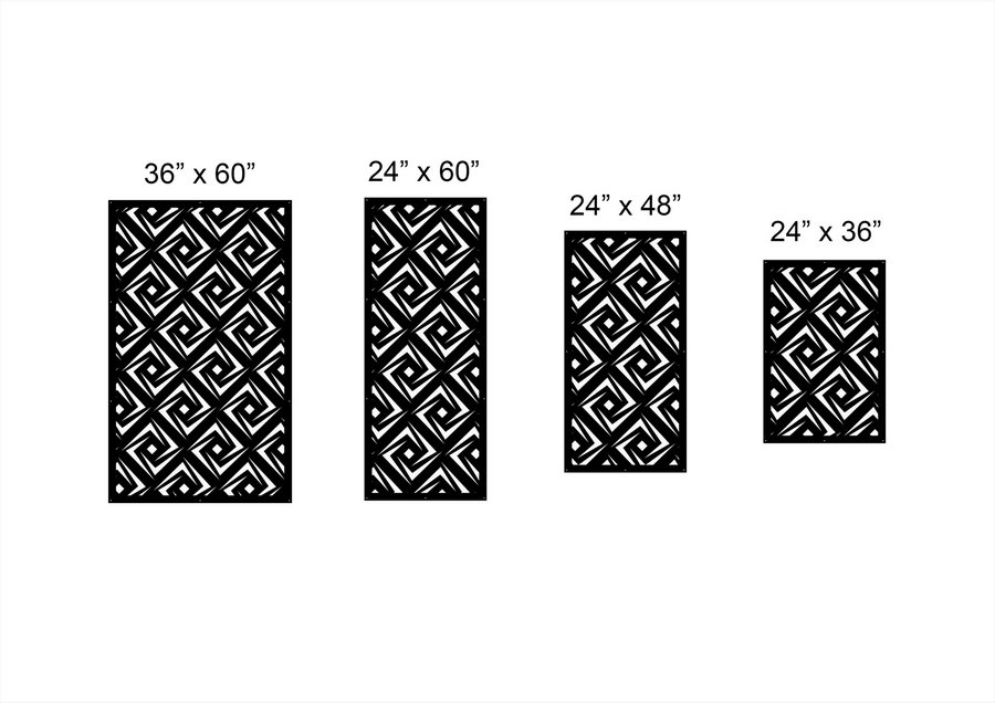Gabbro Privacy Panels could be used as privacy panels, gate inserts, wall inserts, decor inserts, fence inserts, wall art, etc. Panels are made from ⅛” (~3.2mm, ~0.125″) thick aluminum to last long (no rusting/ rust bleeding). In addition, the aluminum panel is powder coated for extra protection. We offer a variety of colours to choose from.