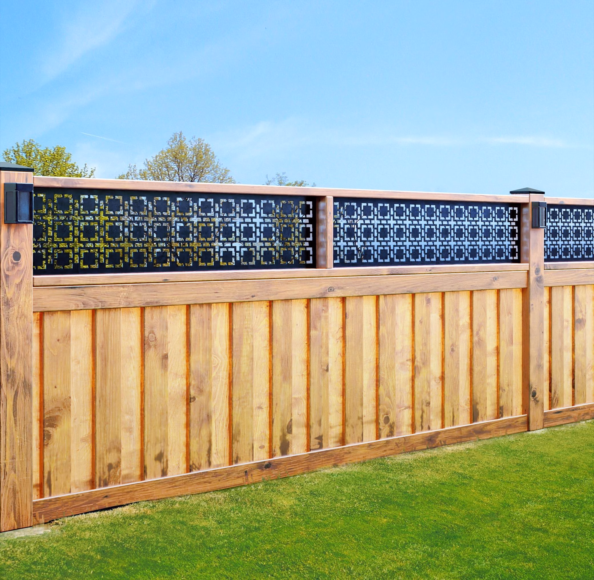 These fence topper panels are designed to be framed into the wooden fence or could be screwed on top of the wooden frame. They do have 0.2” d pre drilled holes around their perimeter.