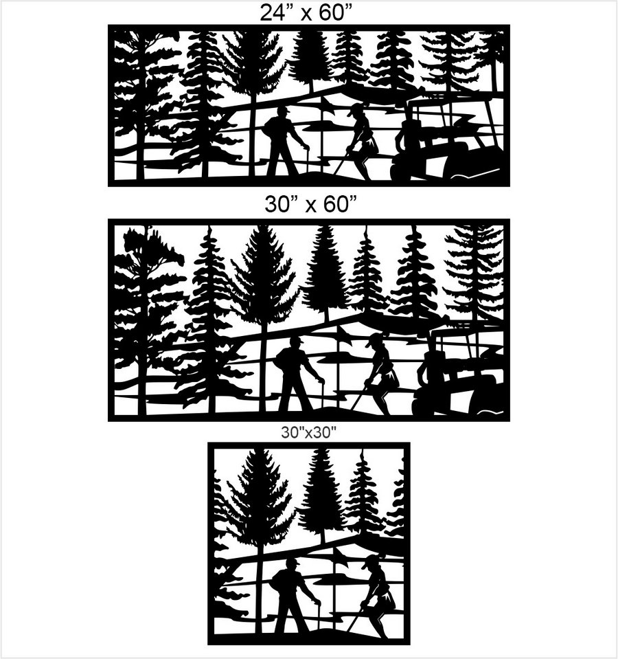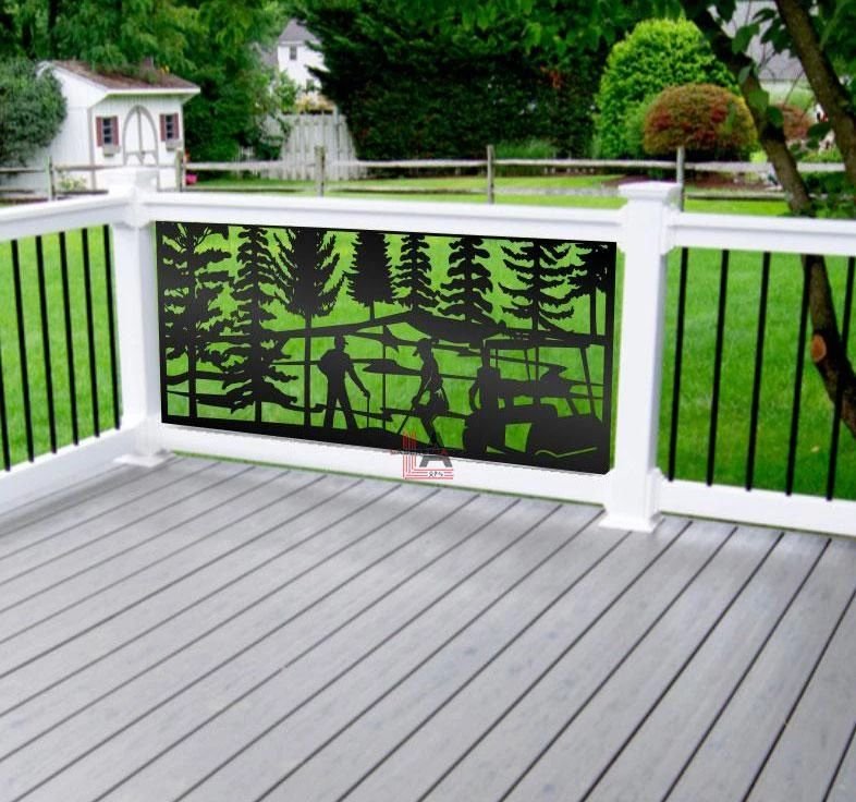 Golfing Privacy Panels could be used as privacy panels, gate inserts, wall inserts, decor inserts, fence inserts, wall art, etc. Panels are made from ⅛” (~3.2mm, ~0.125″) thick aluminum to last long (no rusting/ rust bleeding). In addition, the aluminum panel is powder coated for extra protection. We offer a variety of colours to choose from.