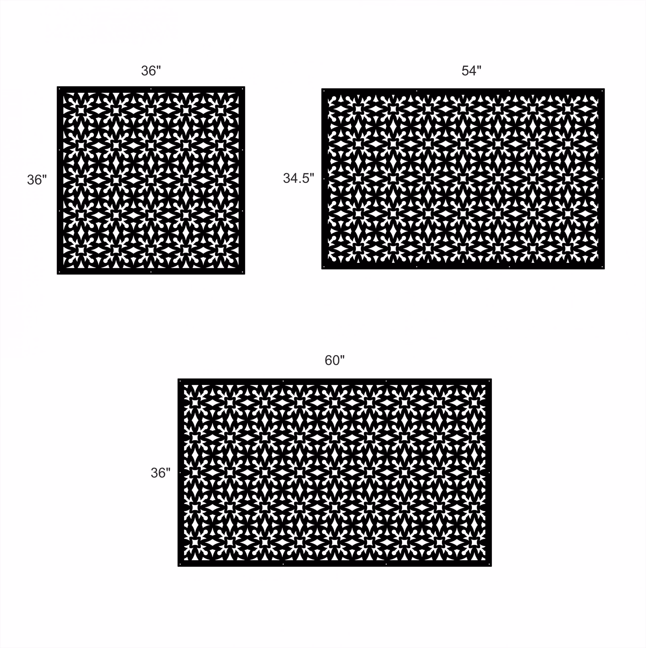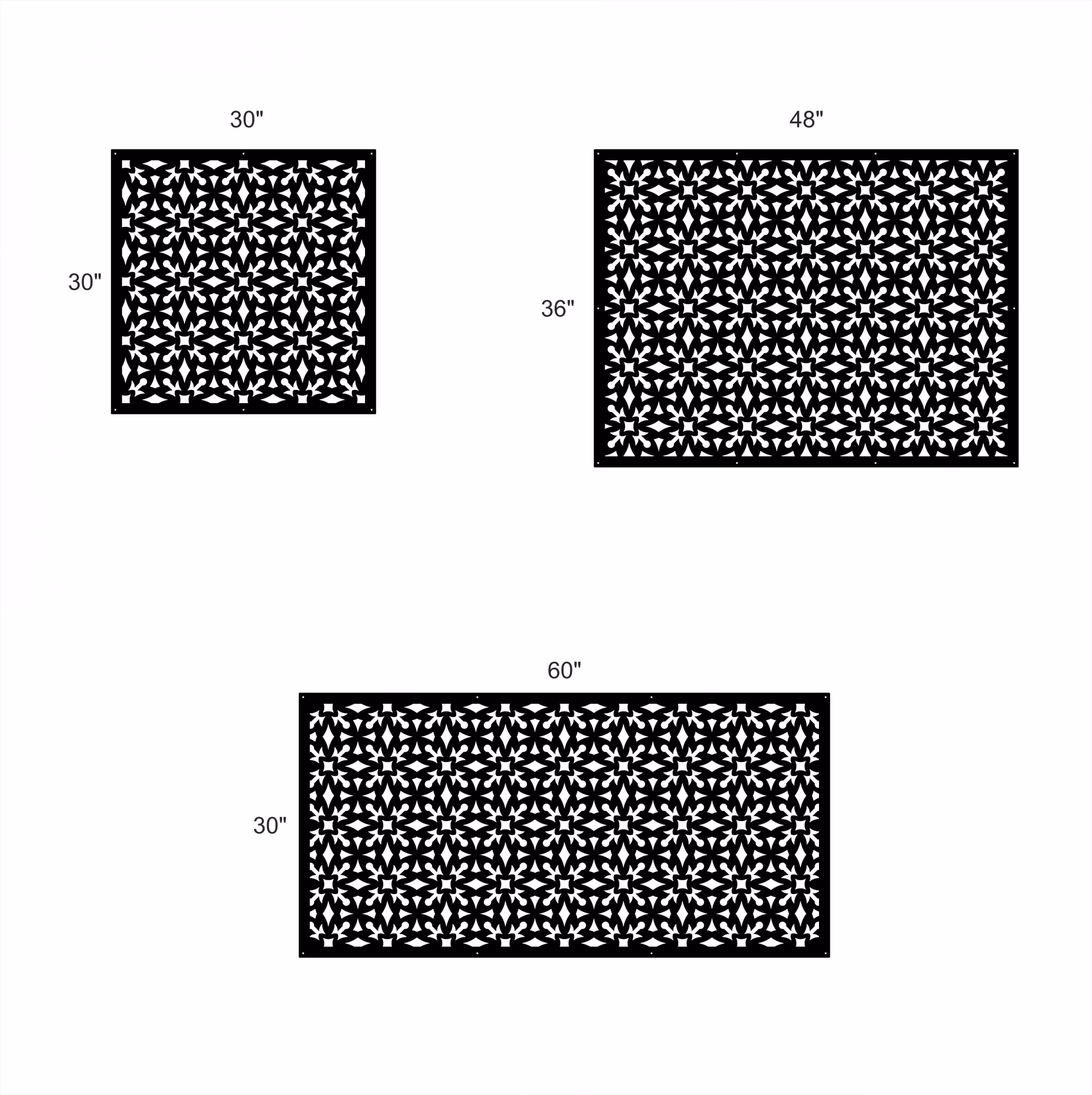 Illusion Privacy Panels could be used as privacy panels, gate inserts, wall inserts, decor inserts, fence inserts, wall art, etc. Panels are made from ⅛” (~3.2mm, ~0.125″) thick aluminum to last long (no rusting/ rust bleeding). In addition, the aluminum panel is powder coated for extra protection. We offer a variety of colours to choose from.