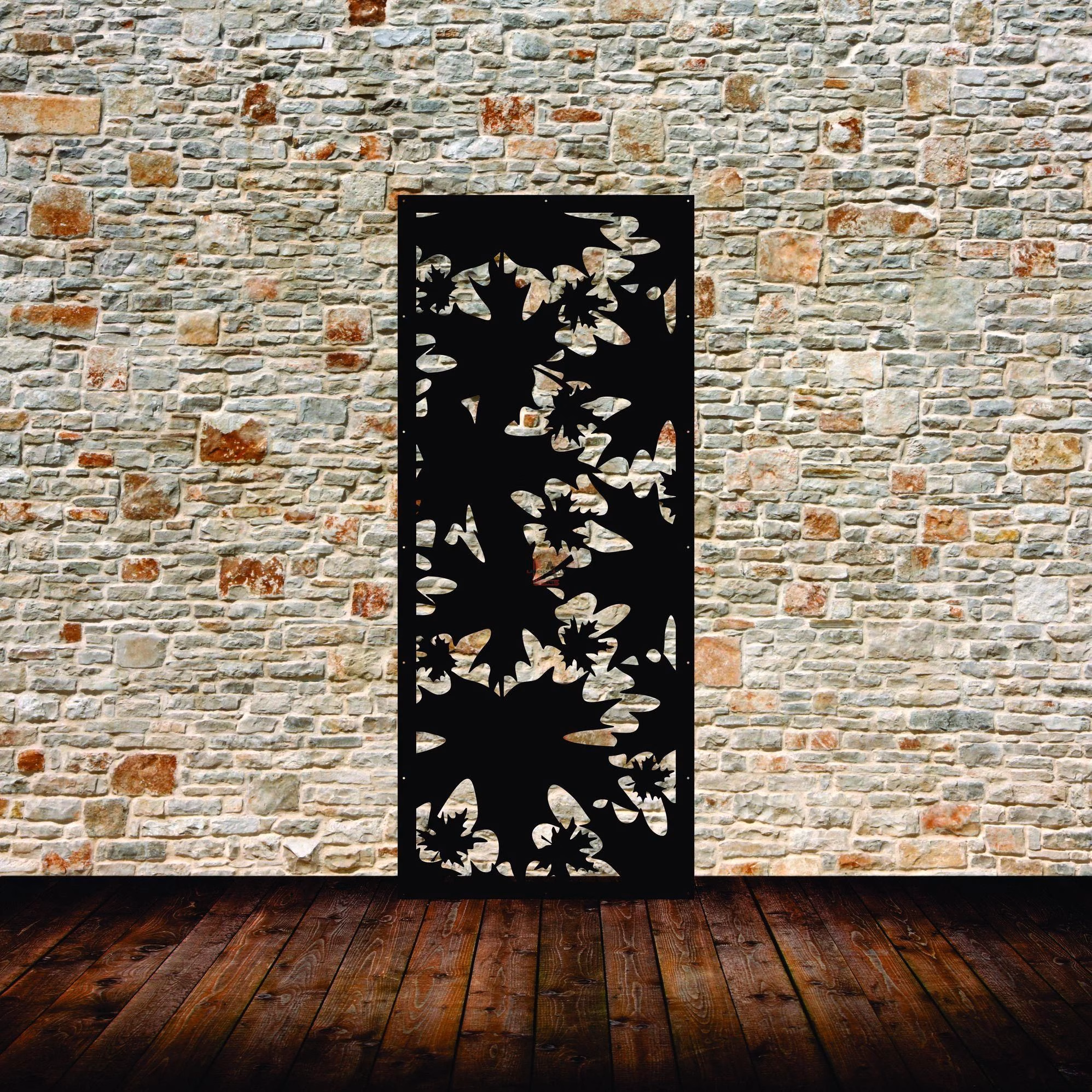 Maple Leaves Privacy Panels could be used as privacy panels, gate inserts, wall inserts, decor inserts, fence inserts, wall art, etc. Panels are made from ⅛” (~3.2mm, ~0.125″) thick aluminum to last long (no rusting/ rust bleeding). In addition, the aluminum panel is powder coated for extra protection. We offer a variety of colours to choose from.