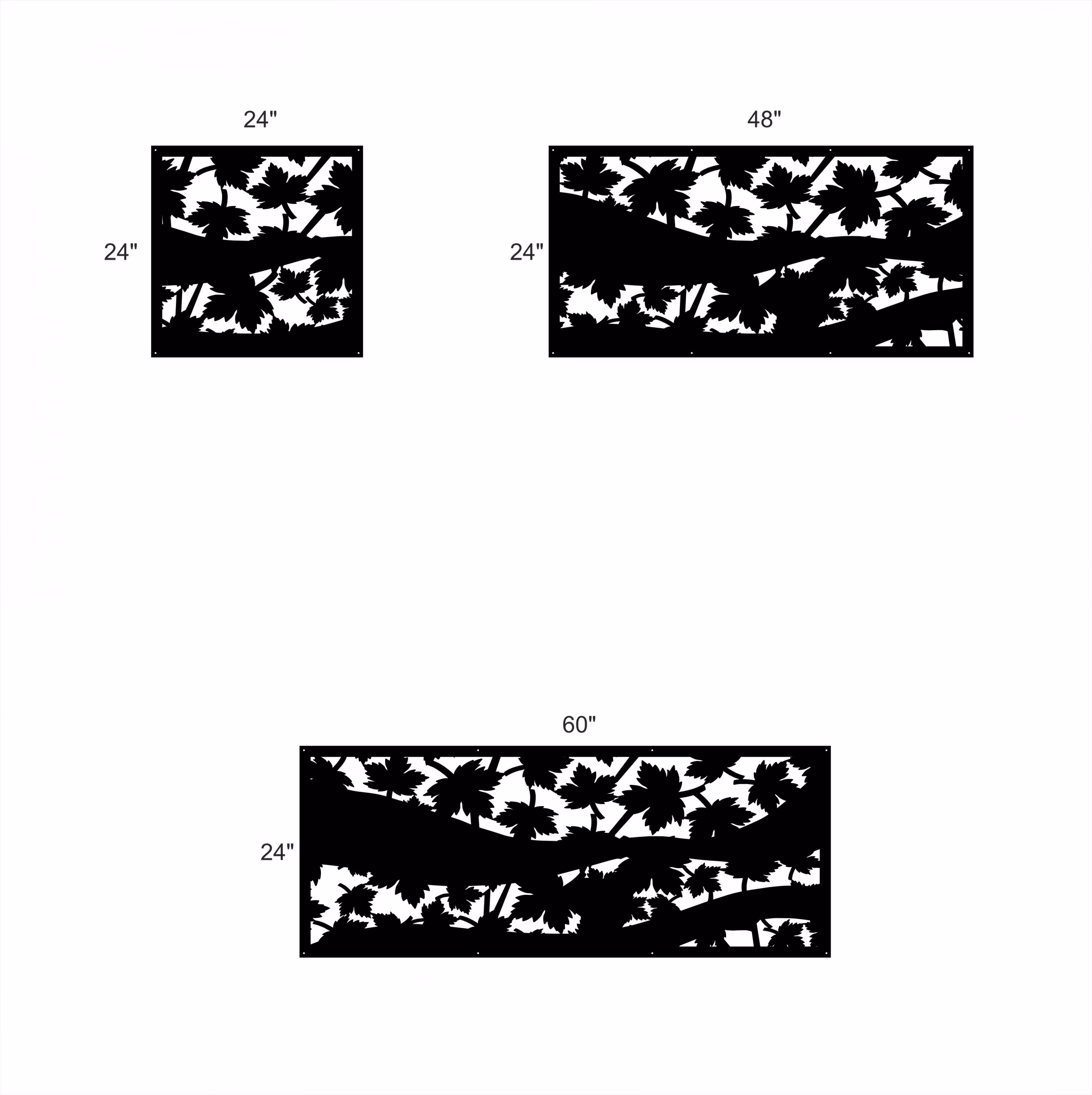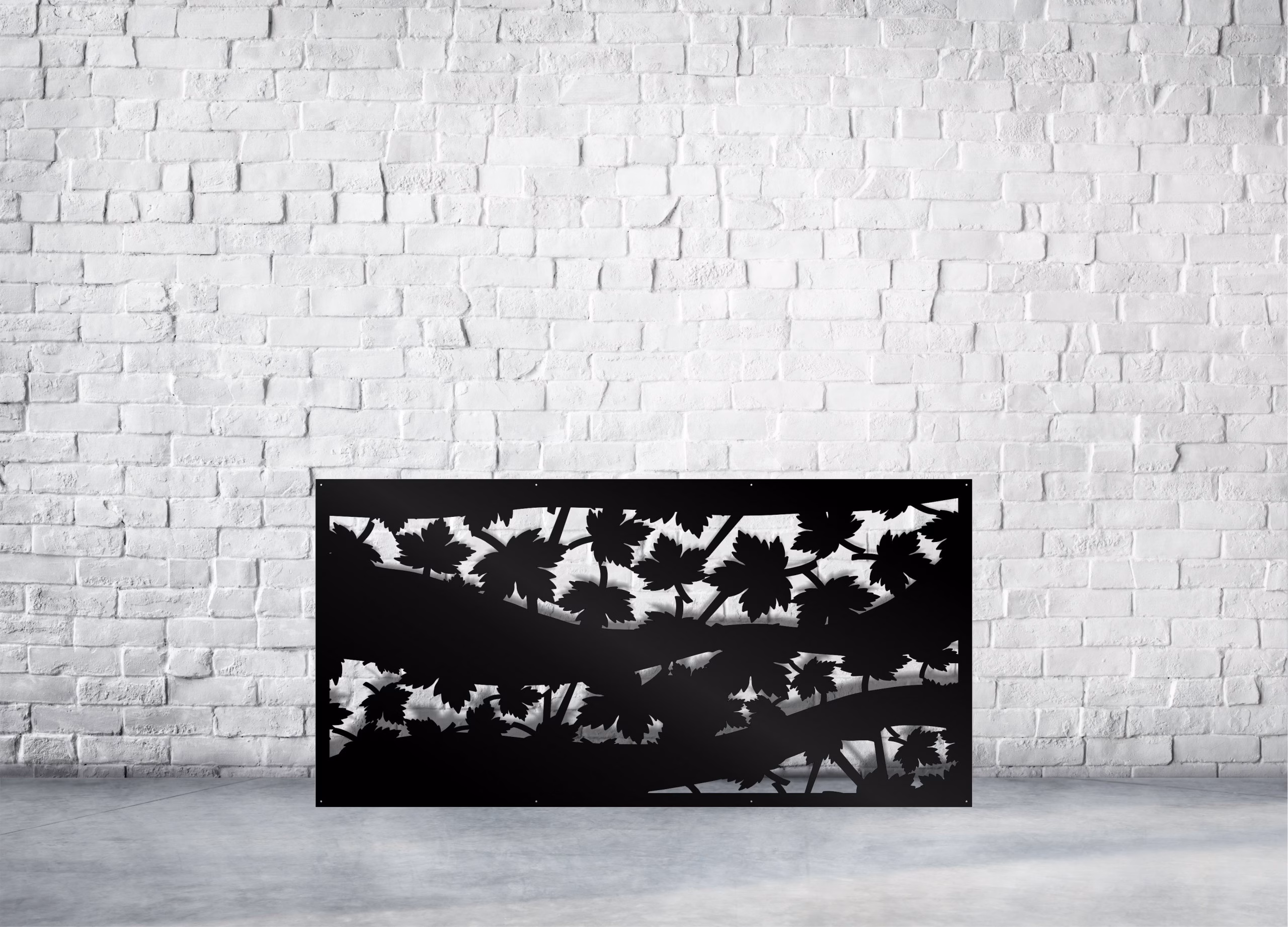 Maple Wind Privacy Panels could be used as privacy panels, gate inserts, wall inserts, decor inserts, fence inserts, wall art, etc. Panels are made from ⅛” (~3.2mm, ~0.125″) thick aluminum to last long (no rusting/ rust bleeding). In addition, the aluminum panel is powder coated for extra protection. We offer a variety of colours to choose from.