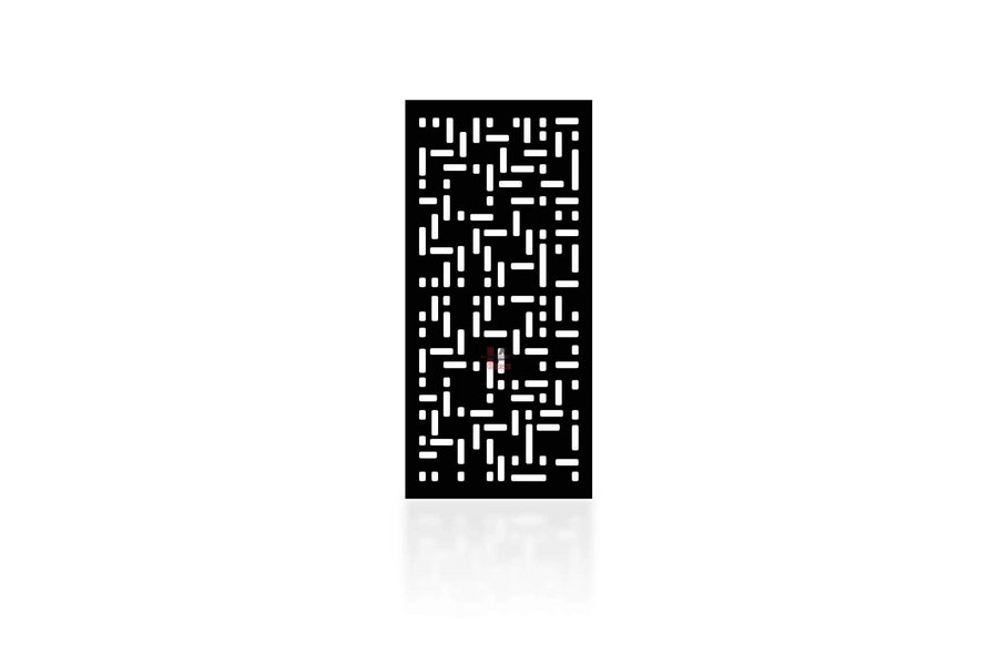 Modern Blackout Pattern Style 1 Privacy Panels could be used as privacy panels, gate inserts, wall inserts, decor inserts, fence inserts, wall art, etc. Panels are made from ⅛” (~3.2mm, ~0.125″) thick aluminum to last long (no rusting/ rust bleeding). In addition, the aluminum panel is powder coated for extra protection. We offer a variety of colours to choose from.