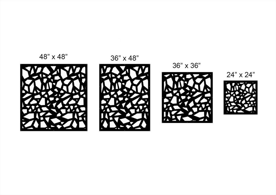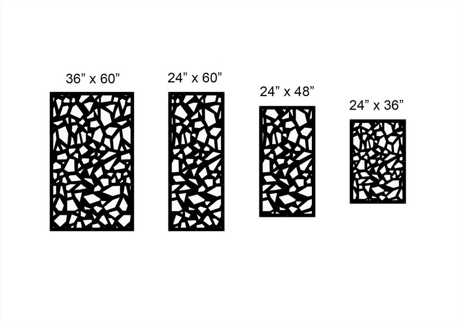 Modern Style 4 Privacy Panels could be used as privacy panels, gate inserts, wall inserts, decor inserts, fence inserts, wall art, etc. Panels are made from ⅛” (~3.2mm, ~0.125″) thick aluminum to last long (no rusting/ rust bleeding). In addition, the aluminum panel is powder coated for extra protection. We offer a variety of colours to choose from.