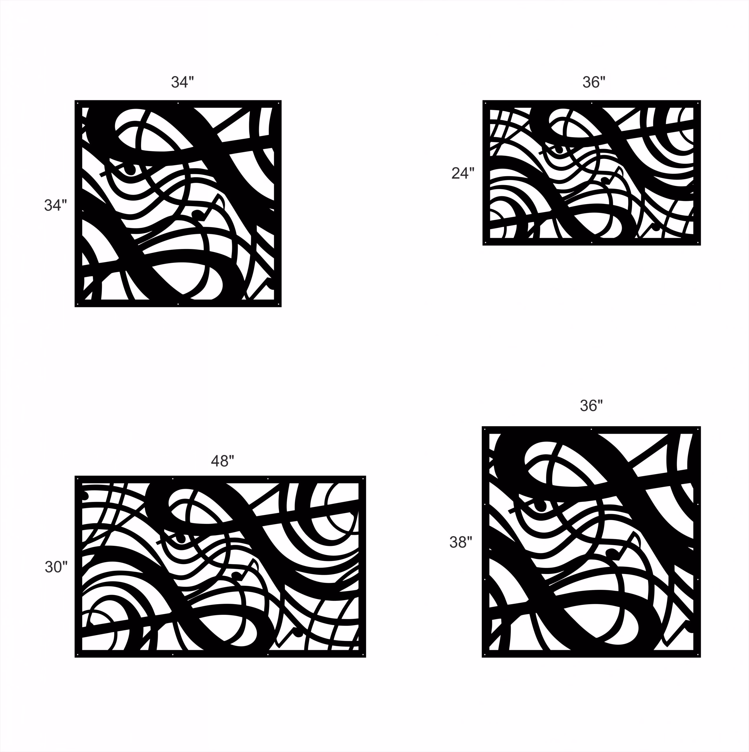 Musical Privacy Panels could be used as privacy panels, gate inserts, wall inserts, decor inserts, fence inserts, wall art, etc. Panels are made from ⅛” (~3.2mm, ~0.125″) thick aluminum to last long (no rusting/ rust bleeding). In addition, the aluminum panel is powder coated for extra protection. We offer a variety of colours to choose from.