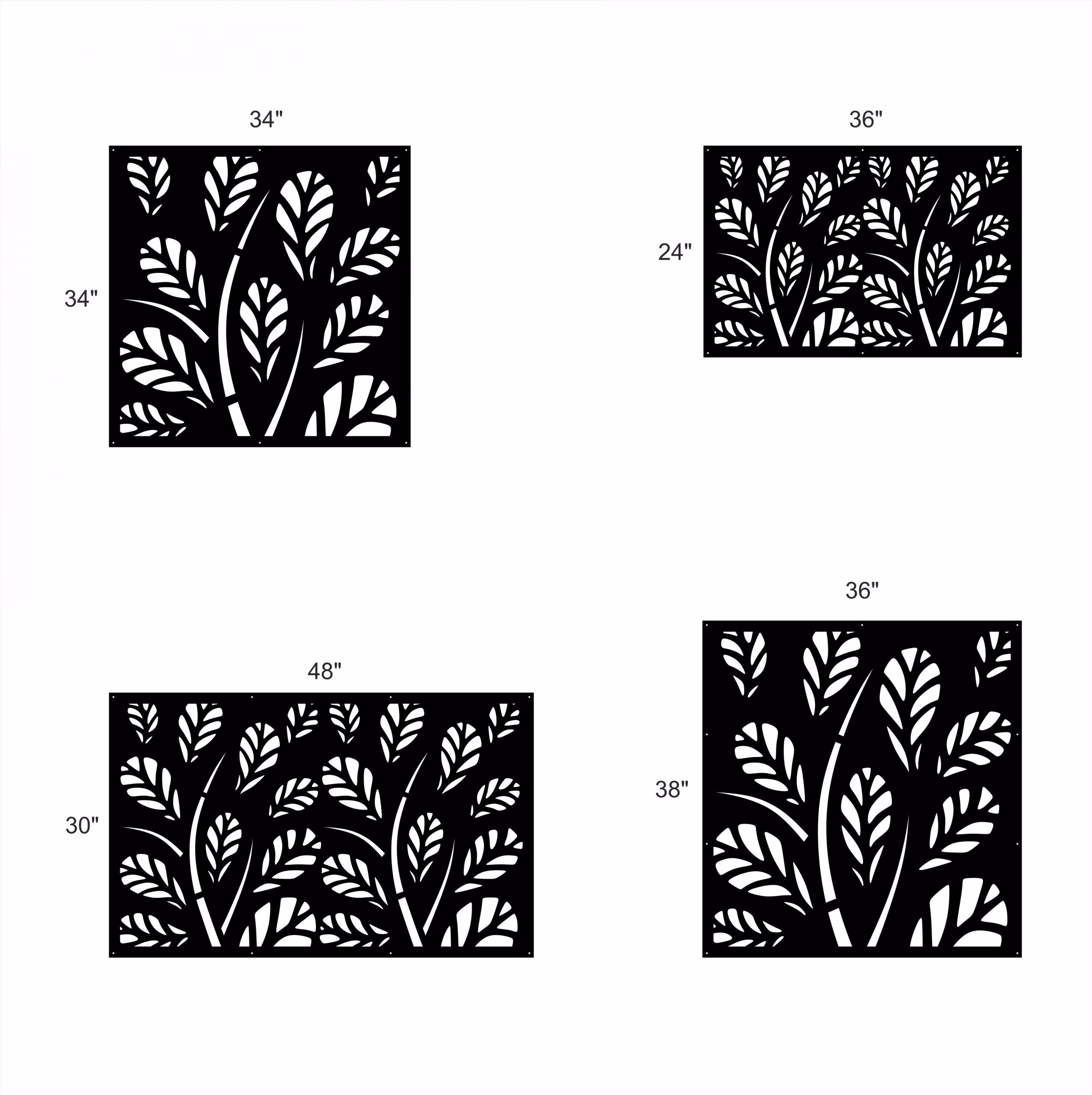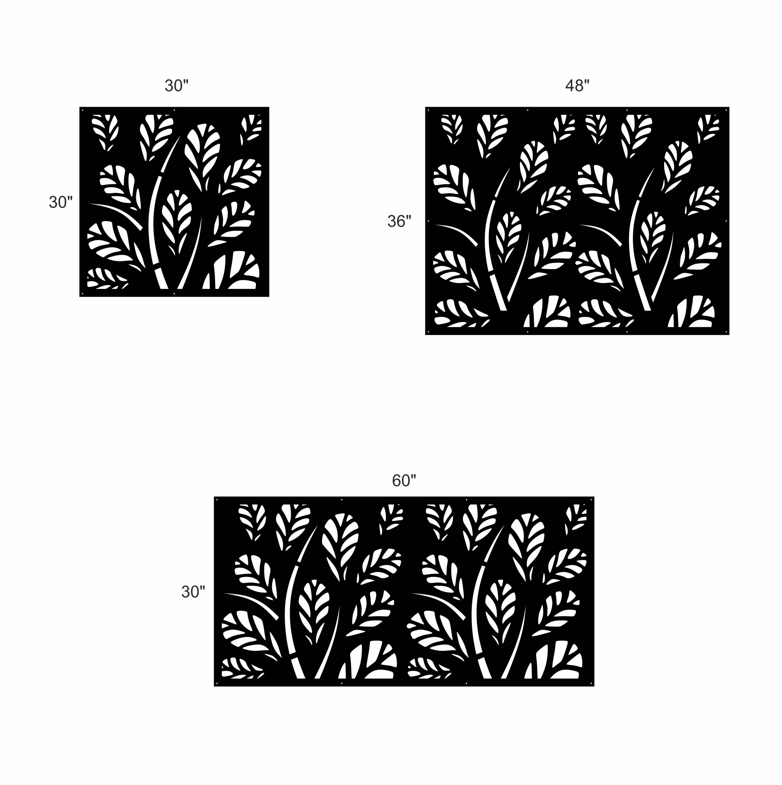 Oak Privacy Panels could be used as privacy panels, gate inserts, wall inserts, decor inserts, fence inserts, wall art, etc. Panels are made from ⅛” (~3.2mm, ~0.125″) thick aluminum to last long (no rusting/ rust bleeding). In addition, the aluminum panel is powder coated for extra protection. We offer a variety of colours to choose from.