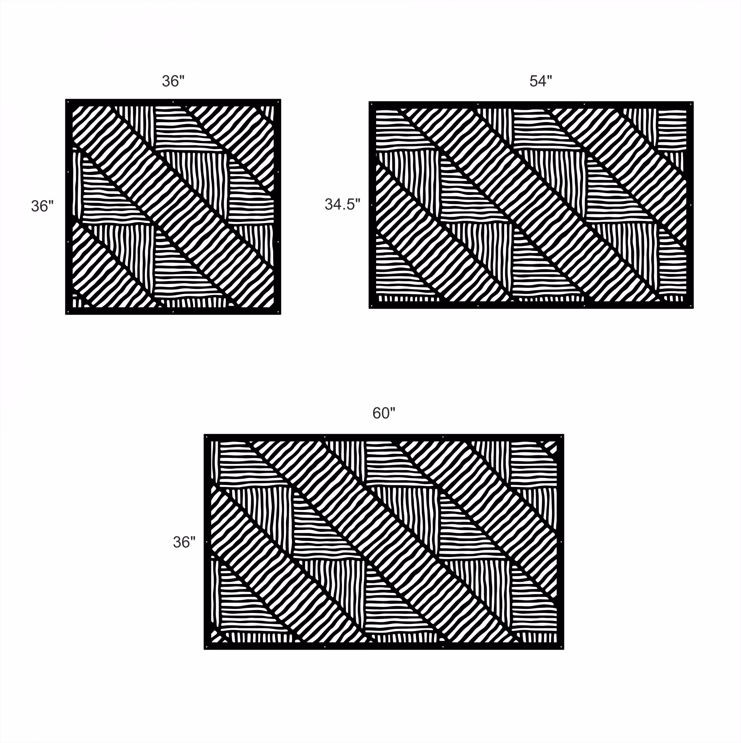 Rug Pattern Privacy Panels could be used as privacy panels, gate inserts, wall inserts, decor inserts, fence inserts, wall art, etc. Panels are made from ⅛” (~3.2mm, ~0.125″) thick aluminum to last long (no rusting/ rust bleeding). In addition, the aluminum panel is powder coated for extra protection. We offer a variety of colours to choose from.