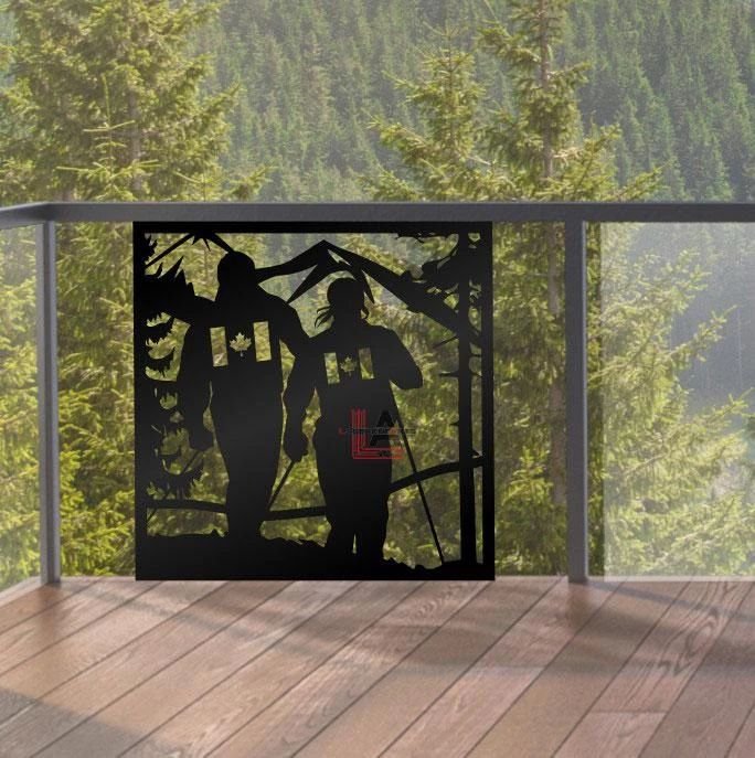Skiing Privacy Panels could be used as privacy panels, gate inserts, wall inserts, decor inserts, fence inserts, wall art, etc. Panels are made from ⅛” (~3.2mm, ~0.125″) thick aluminum to last long (no rusting/ rust bleeding). In addition, the aluminum panel is powder coated for extra protection. We offer a variety of colours to choose from.