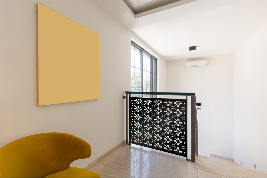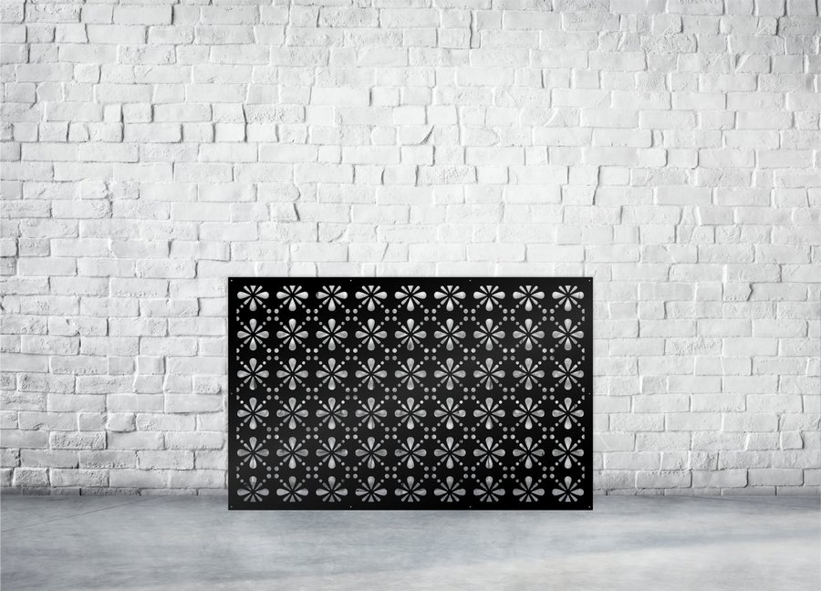 Skosh Privacy Panels could be used as privacy panels, gate inserts, wall inserts, decor inserts, fence inserts, wall art, etc. Panels are made from ⅛” (~3.2mm, ~0.125″) thick aluminum to last long (no rusting/ rust bleeding). In addition, the aluminum panel is powder coated for extra protection. We offer a variety of colours to choose from.