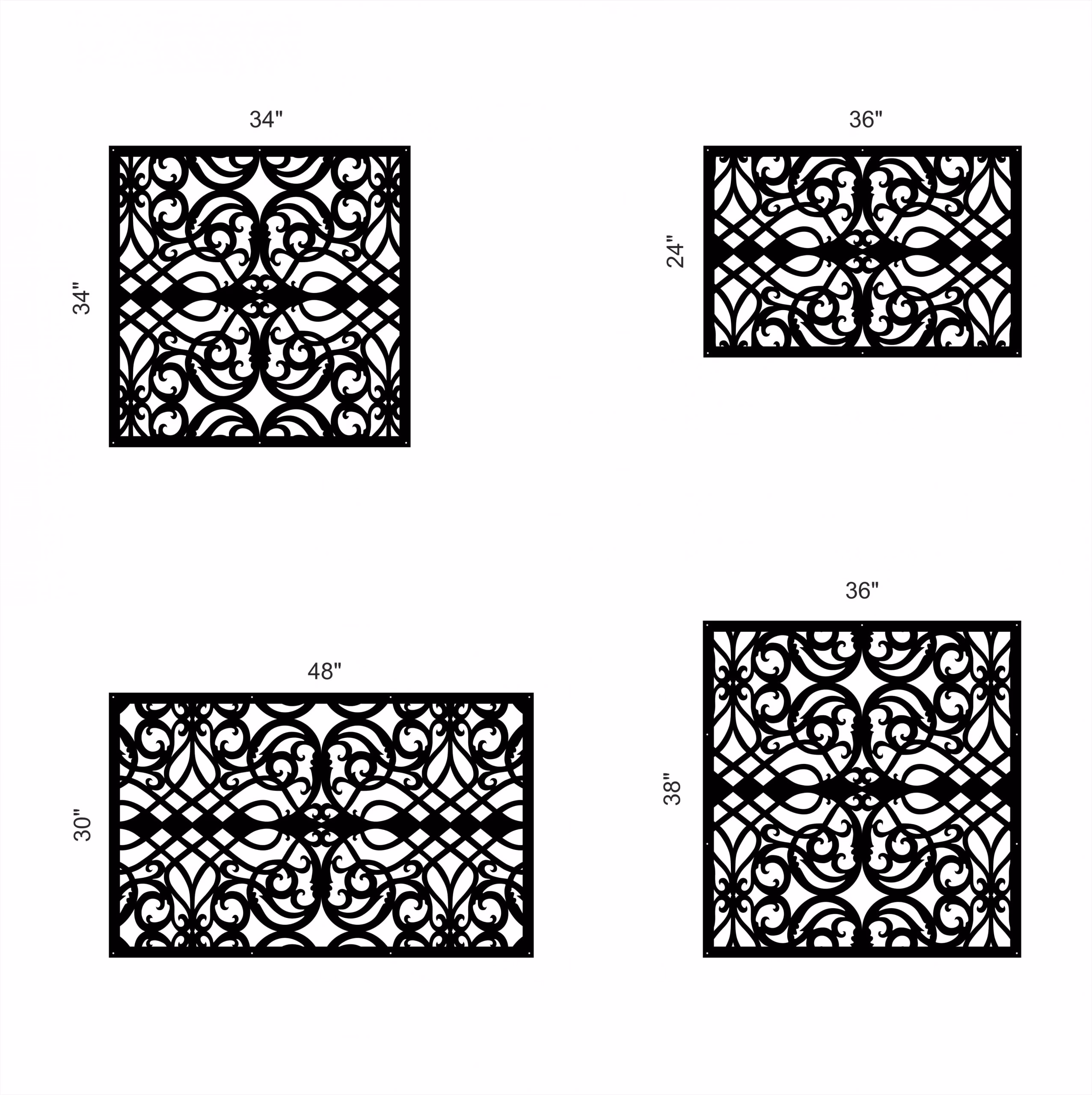 Spade Privacy Panels could be used as privacy panels, gate inserts, wall inserts, decor inserts, fence inserts, wall art, etc. Panels are made from ⅛” (~3.2mm, ~0.125″) thick aluminum to last long (no rusting/ rust bleeding). In addition, the aluminum panel is powder coated for extra protection. We offer a variety of colours to choose from.