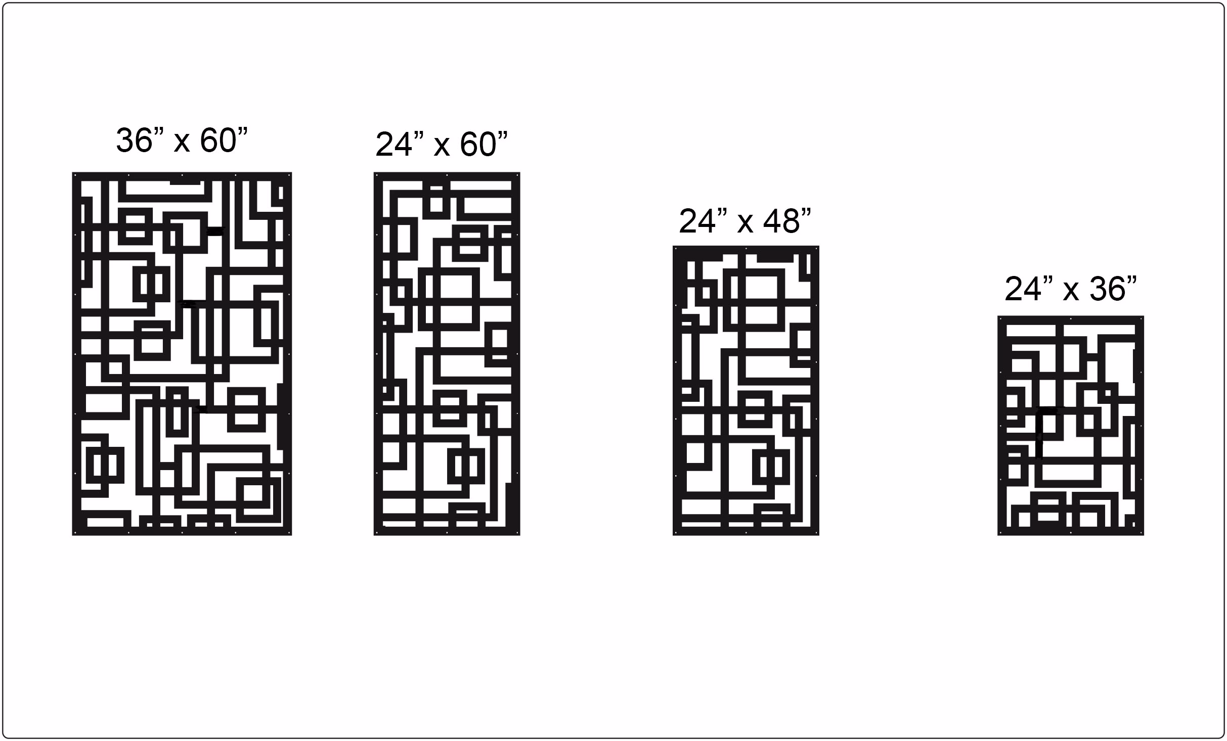 Squares Privacy Panels could be used as privacy panels, gate inserts, wall inserts, decor inserts, fence inserts, wall art, etc. Panels are made from ⅛” (~3.2mm, ~0.125″) thick aluminum to last long (no rusting/ rust bleeding). In addition, the aluminum panel is powder coated for extra protection. We offer a variety of colours to choose from.