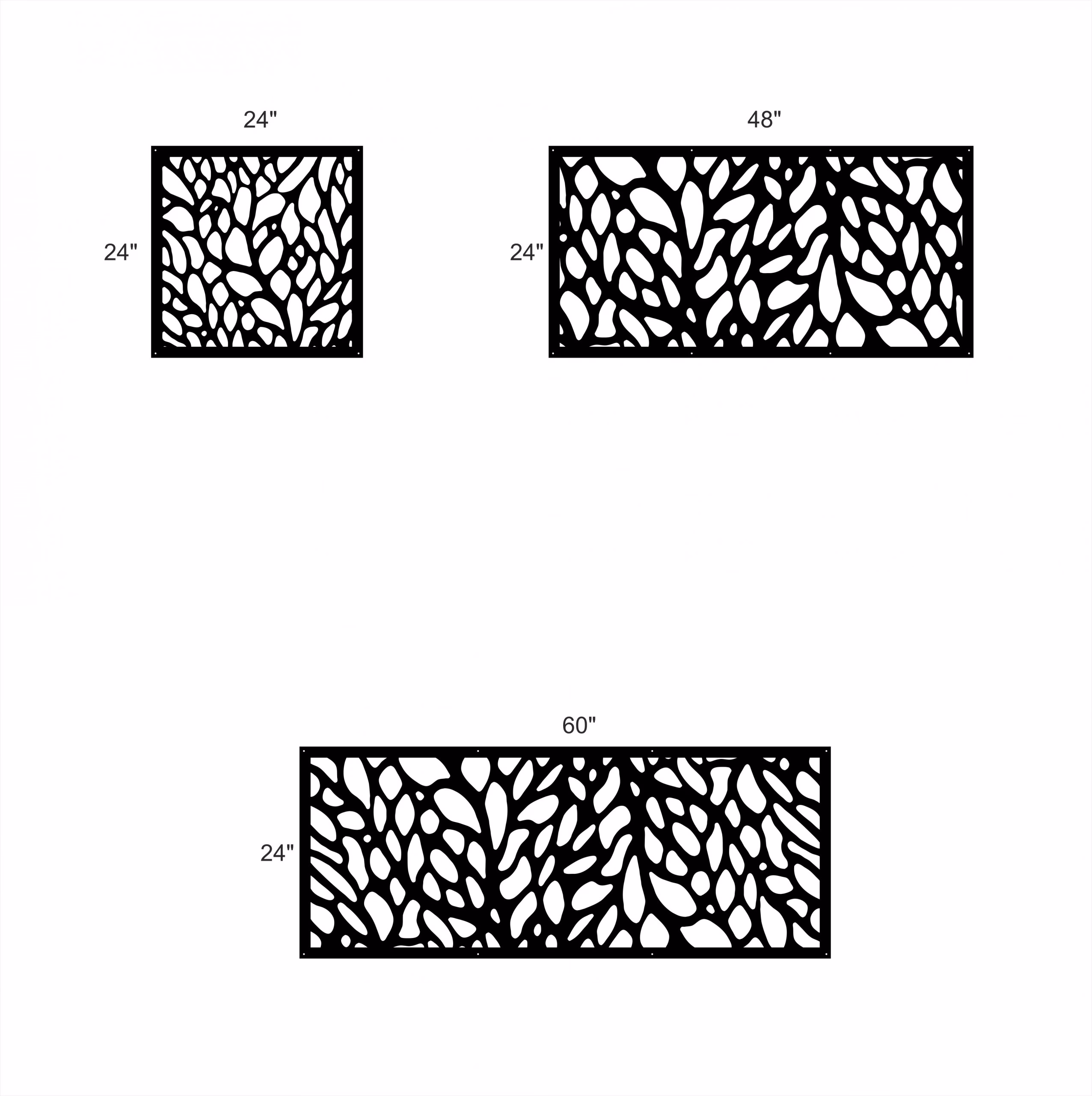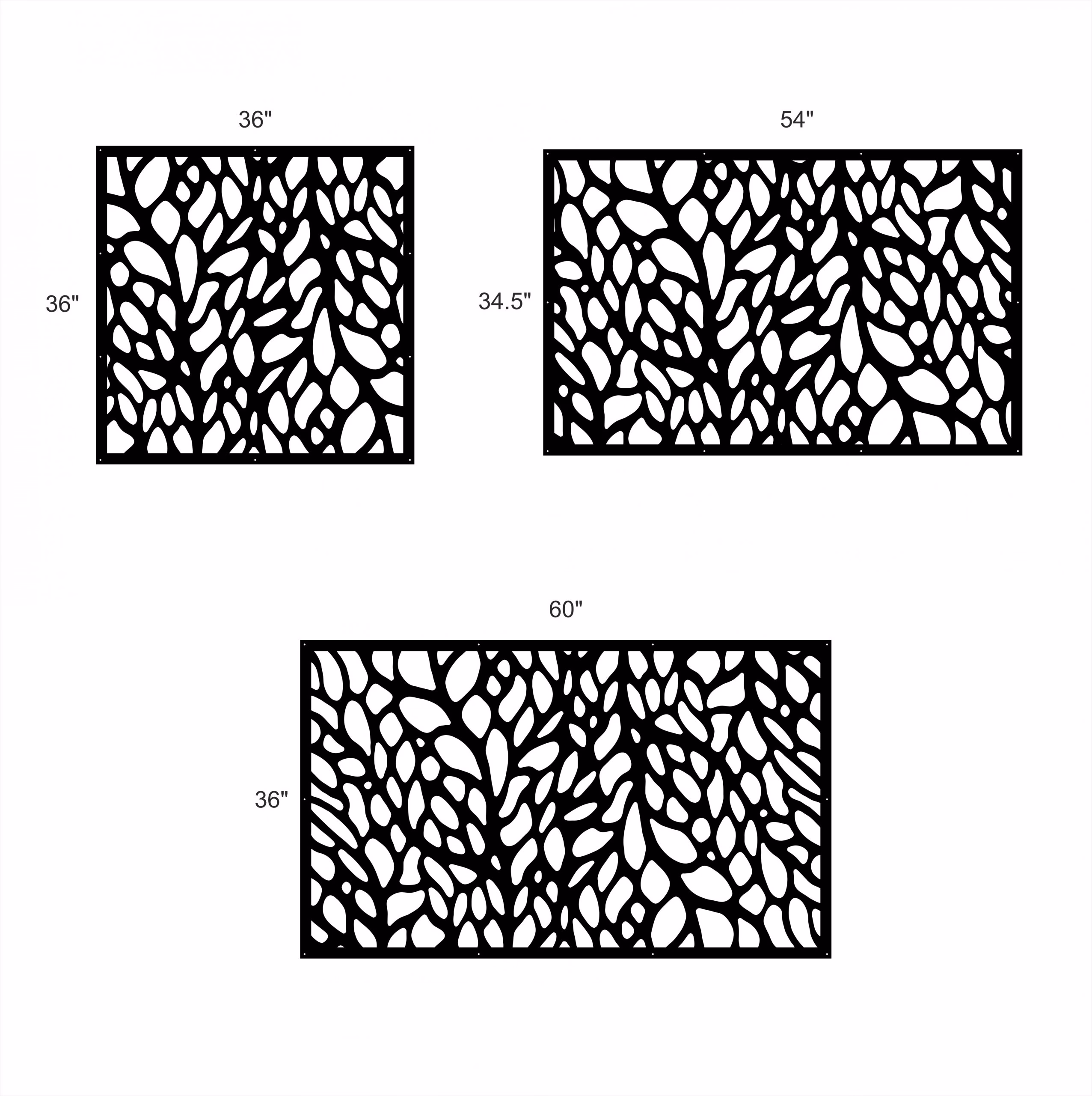 Tree Vines Privacy Panels could be used as privacy panels, gate inserts, wall inserts, decor inserts, fence inserts, wall art, etc. Panels are made from ⅛” (~3.2mm, ~0.125″) thick aluminum to last long (no rusting/ rust bleeding). In addition, the aluminum panel is powder coated for extra protection. We offer a variety of colours to choose from.