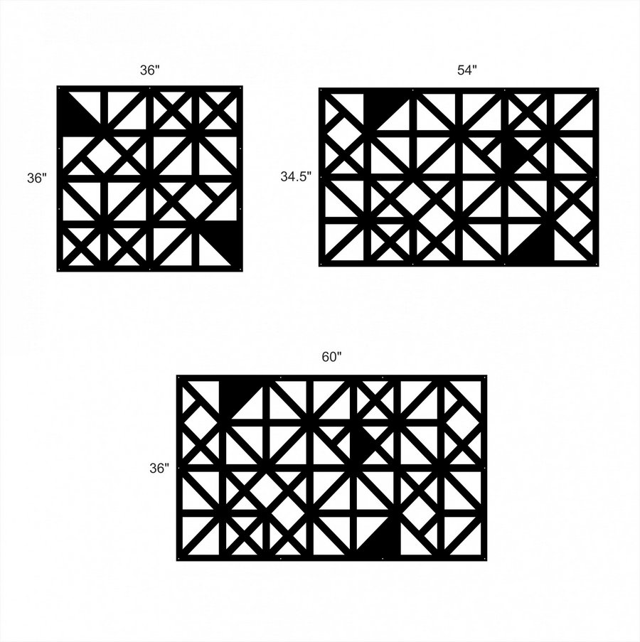 Trinity Privacy Panels could be used as privacy panels, gate inserts, wall inserts, decor inserts, fence inserts, wall art, etc. Panels are made from ⅛” (~3.2mm, ~0.125″) thick aluminum to last long (no rusting/ rust bleeding). In addition, the aluminum panel is powder coated for extra protection. We offer a variety of colours to choose from.