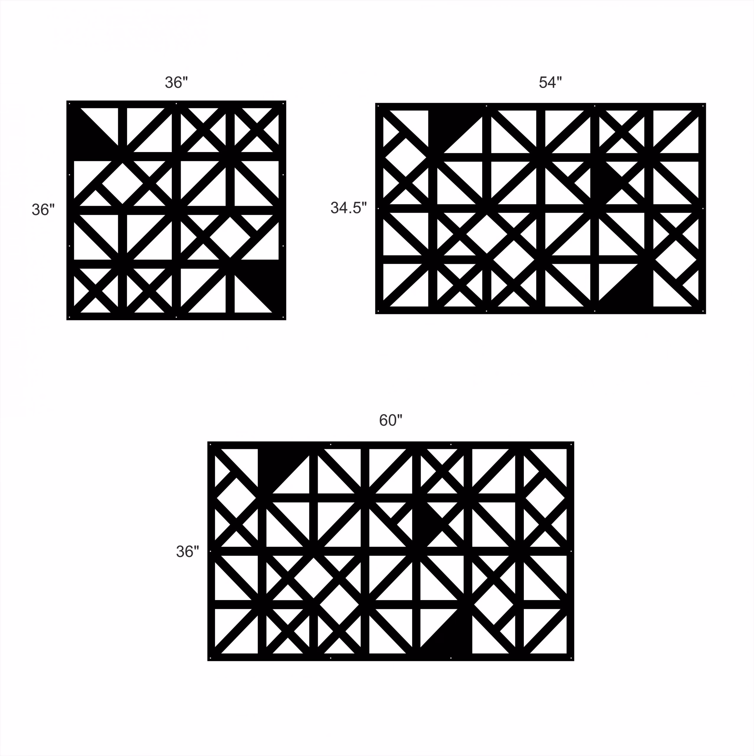 Trinity Privacy Panels could be used as privacy panels, gate inserts, wall inserts, decor inserts, fence inserts, wall art, etc. Panels are made from ⅛” (~3.2mm, ~0.125″) thick aluminum to last long (no rusting/ rust bleeding). In addition, the aluminum panel is powder coated for extra protection. We offer a variety of colours to choose from.