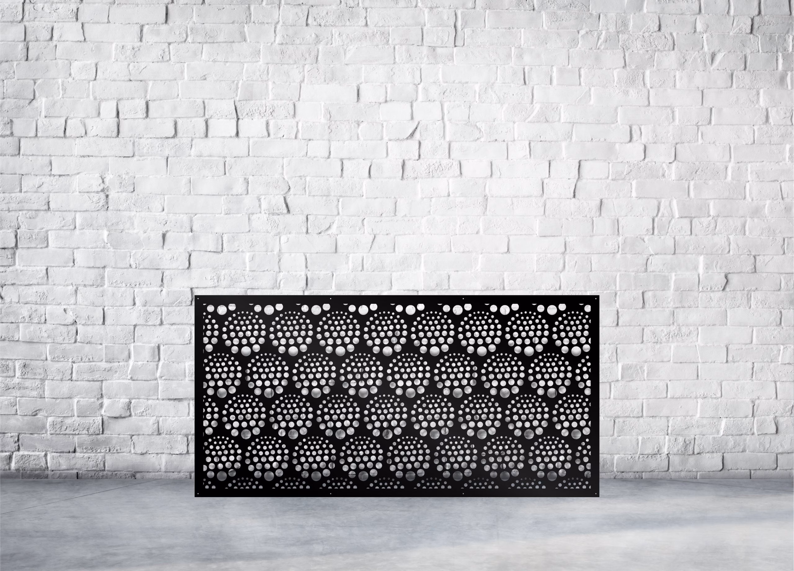 Water Drop Privacy Panels could be used as privacy panels, gate inserts, wall inserts, decor inserts, fence inserts, wall art, etc. Panels are made from ⅛” (~3.2mm, ~0.125″) thick aluminum to last long (no rusting/ rust bleeding). In addition, the aluminum panel is powder coated for extra protection. We offer a variety of colours to choose from.