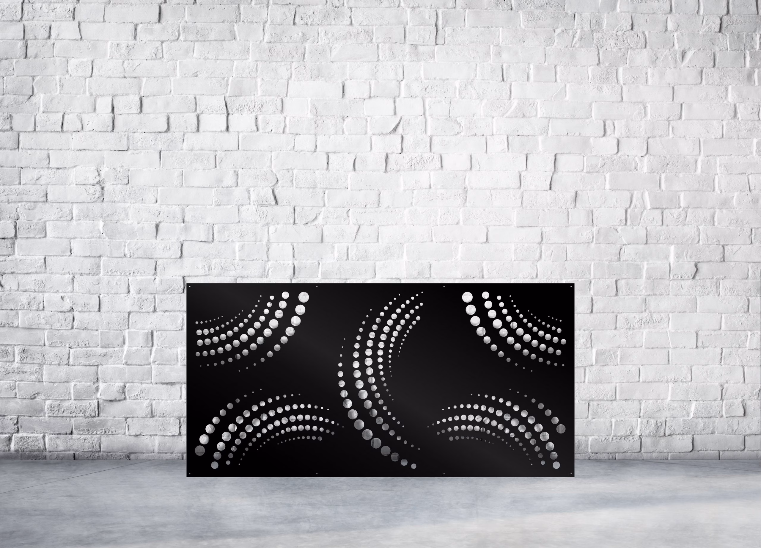 WaterFlow  Privacy Panels could be used as privacy panels, gate inserts, wall inserts, decor inserts, fence inserts, wall art, etc. Panels are made from ⅛” (~3.2mm, ~0.125″) thick aluminum to last long (no rusting/ rust bleeding). In addition, the aluminum panel is powder coated for extra protection. We offer a variety of colours to choose from.