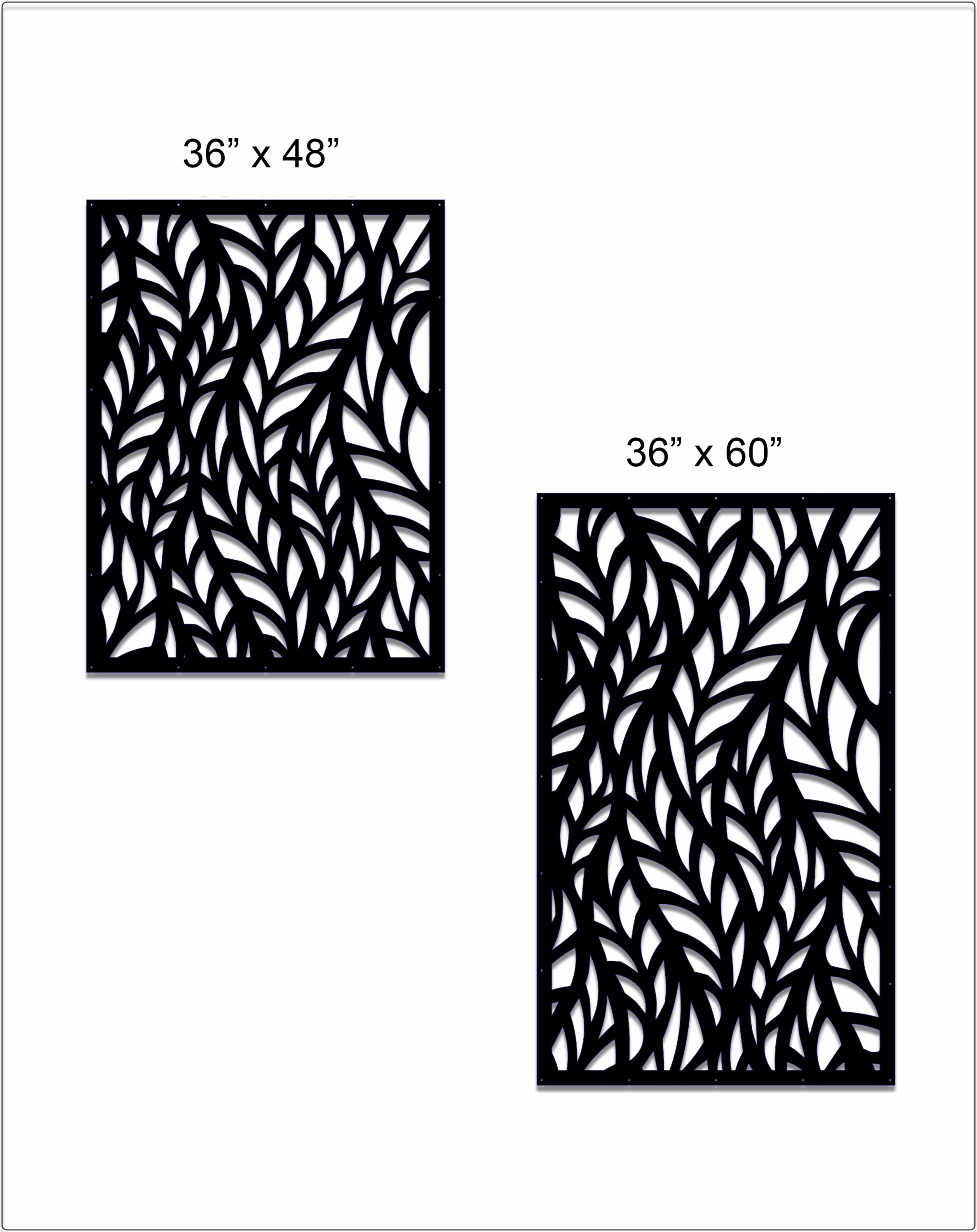 Wavy Leaves Privacy Panels could be used as privacy panels, gate inserts, wall inserts, decor inserts, fence inserts, wall art, etc. Panels are made from ⅛” (~3.2mm, ~0.125″) thick aluminum to last long (no rusting/ rust bleeding). In addition, the aluminum panel is powder coated for extra protection. We offer a variety of colours to choose from.
