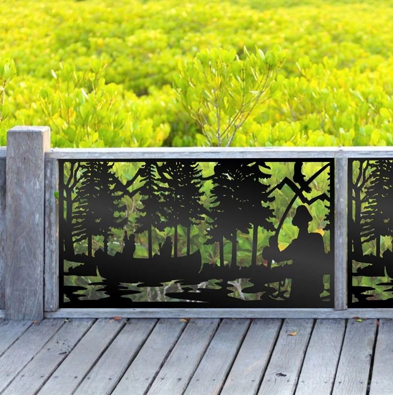Wild Fly Fishing Privacy Panels could be used as privacy panels, gate inserts, wall inserts, decor inserts, fence inserts, wall art, etc. Panels are made from ⅛” (~3.2mm, ~0.125″) thick aluminum to last long (no rusting/ rust bleeding). In addition, the aluminum panel is powder coated for extra protection. We offer a variety of colours to choose from.