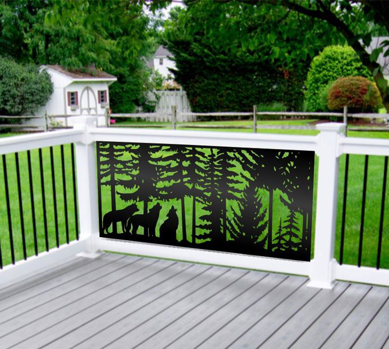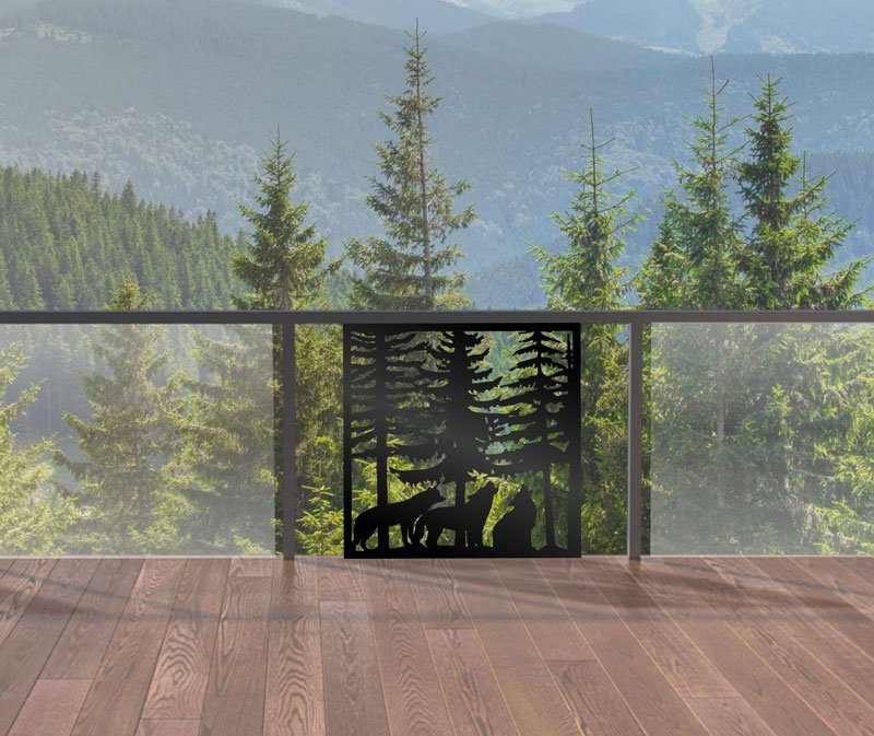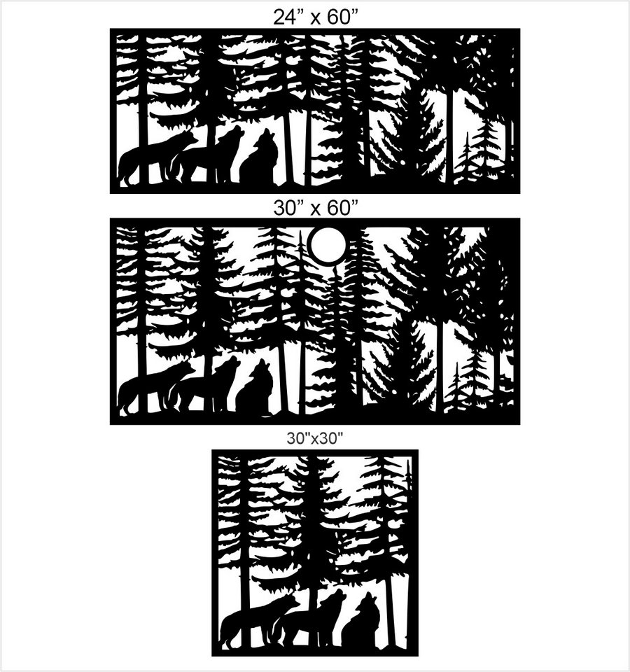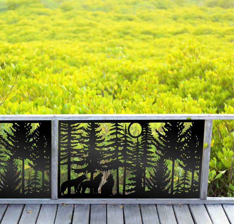 Wildlife Wolfs Privacy Panels could be used as privacy panels, gate inserts, wall inserts, decor inserts, fence inserts, wall art, etc. Panels are made from ⅛” (~3.2mm, ~0.125″) thick aluminum to last long (no rusting/ rust bleeding). In addition, the aluminum panel is powder coated for extra protection. We offer a variety of colours to choose from.