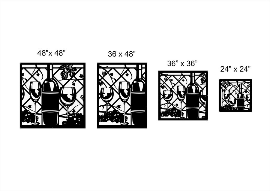 Wine Tasting Privacy Panels could be used as privacy panels, gate inserts, wall inserts, decor inserts, fence inserts, wall art, etc. Panels are made from ⅛” (~3.2mm, ~0.125″) thick aluminum to last long (no rusting/ rust bleeding). In addition, the aluminum panel is powder coated for extra protection. We offer a variety of colours to choose from.