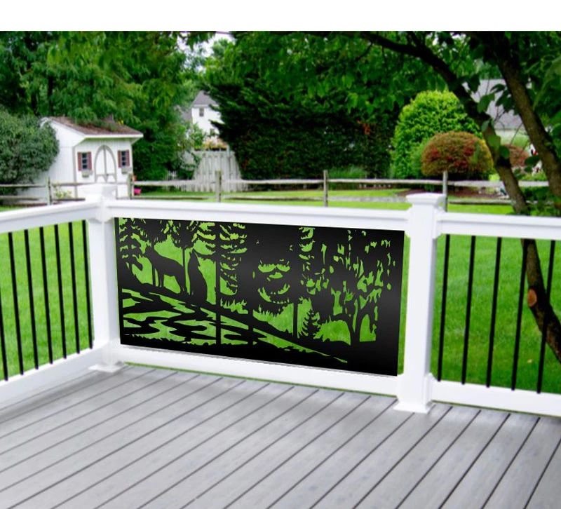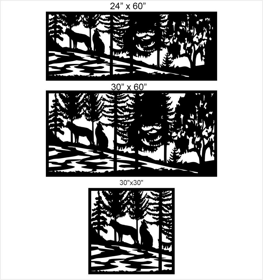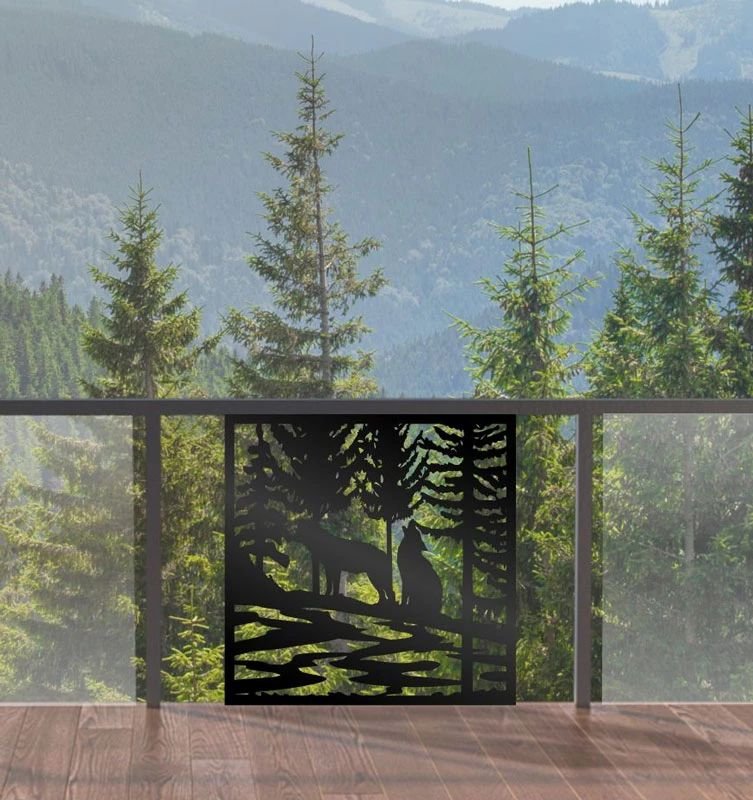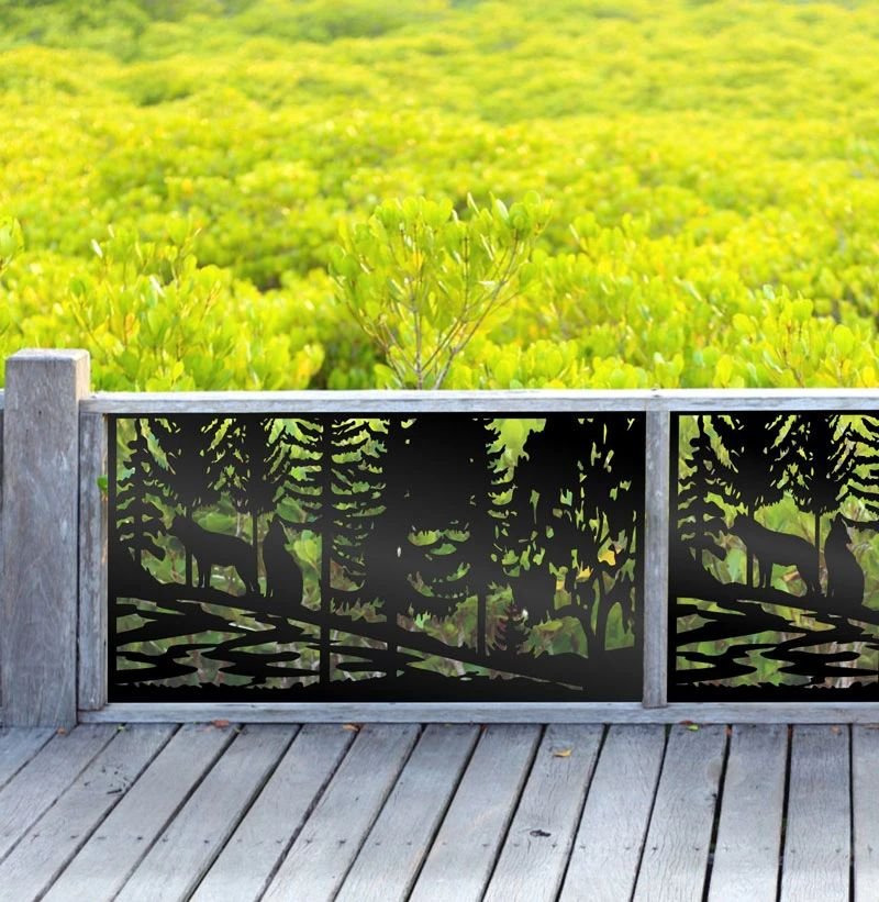 Wolf Family Privacy Panels could be used as privacy panels, gate inserts, wall inserts, decor inserts, fence inserts, wall art, etc. Panels are made from ⅛” (~3.2mm, ~0.125″) thick aluminum to last long (no rusting/ rust bleeding). In addition, the aluminum panel is powder coated for extra protection. We offer a variety of colours to choose from.