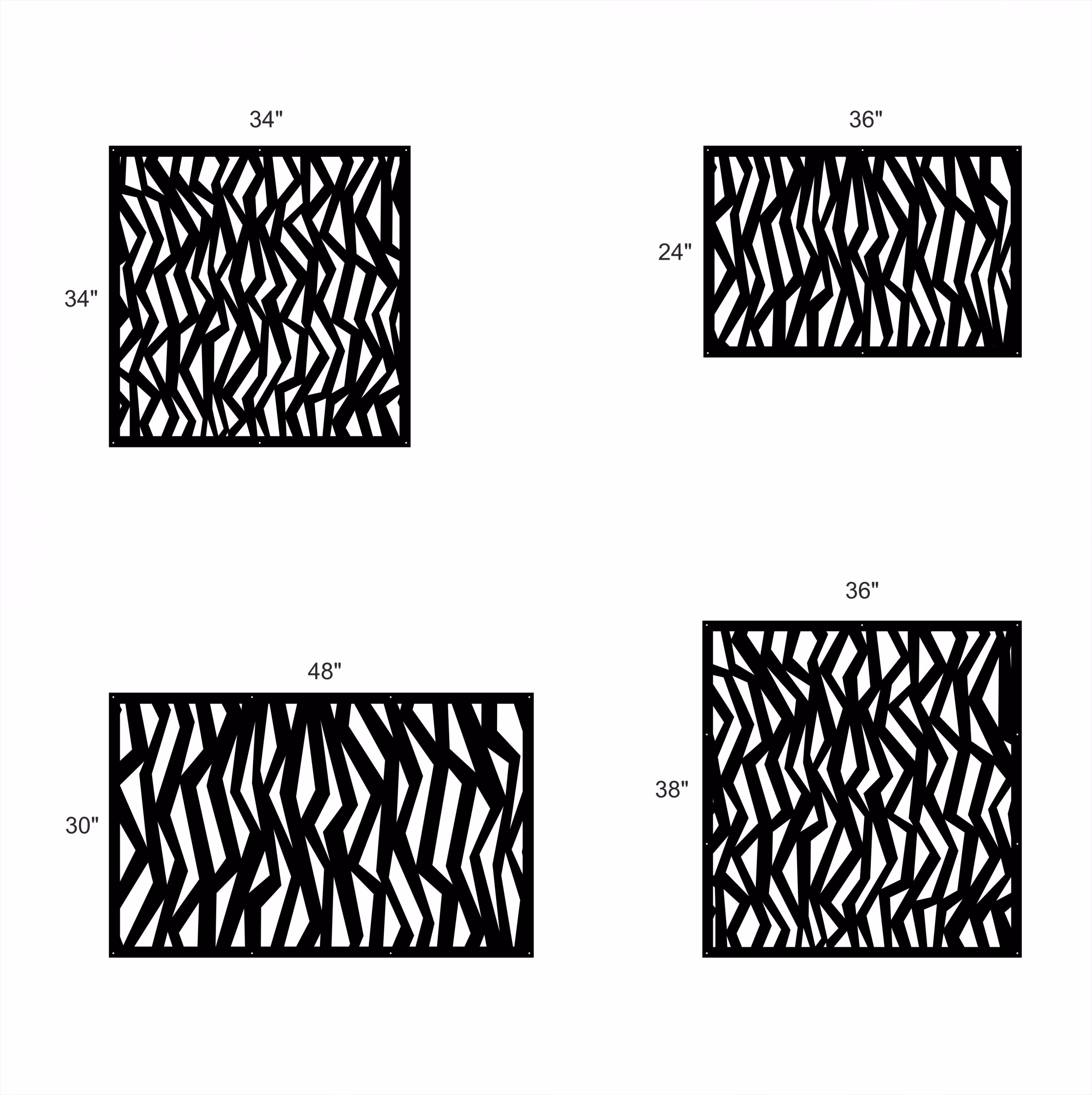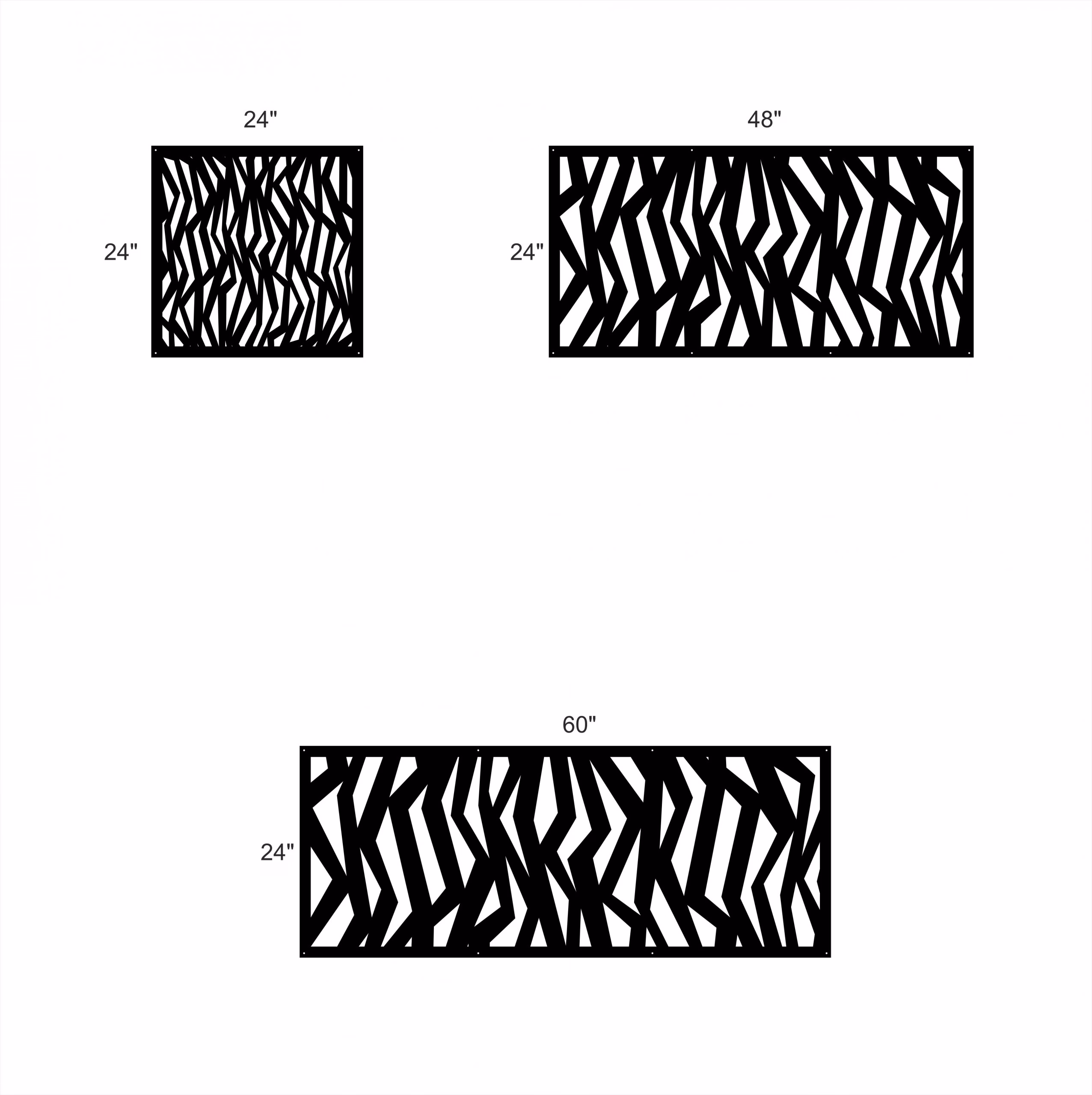ZigZag Privacy Panels could be used as privacy panels, gate inserts, wall inserts, decor inserts, fence inserts, wall art, etc. Panels are made from ⅛” (~3.2mm, ~0.125″) thick aluminum to last long (no rusting/ rust bleeding). In addition, the aluminum panel is powder coated for extra protection. We offer a variety of colours to choose from.