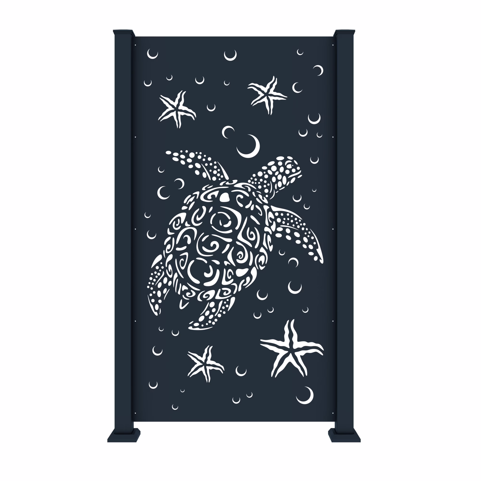 Meet the Ocean Turtle Engineered Privacy Screen – our solution for those who need engineering codes met, require to pass an inspection, or want to simplify the installation process. Both secure and aesthetically pleasing, our panels are lasercut with our original designs that were carefully selected to adhere to various engineering codes.